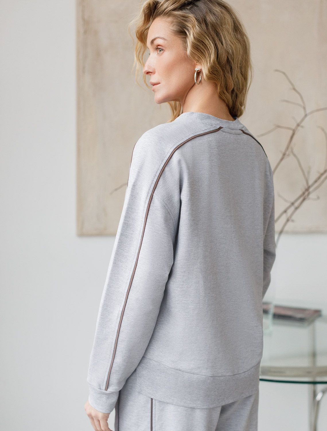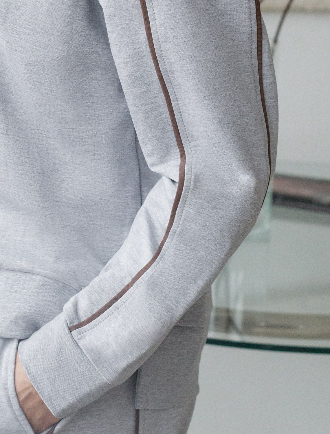 Свитшот с лампасами и разрезами из эластичного футера двухнитки без начеса D49.161 св.серый меланж_cotton club