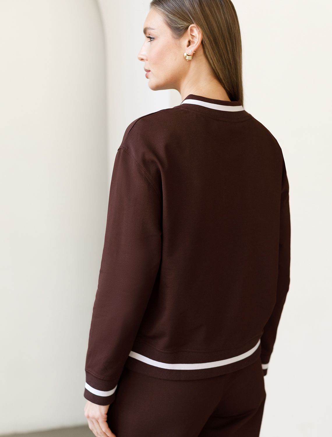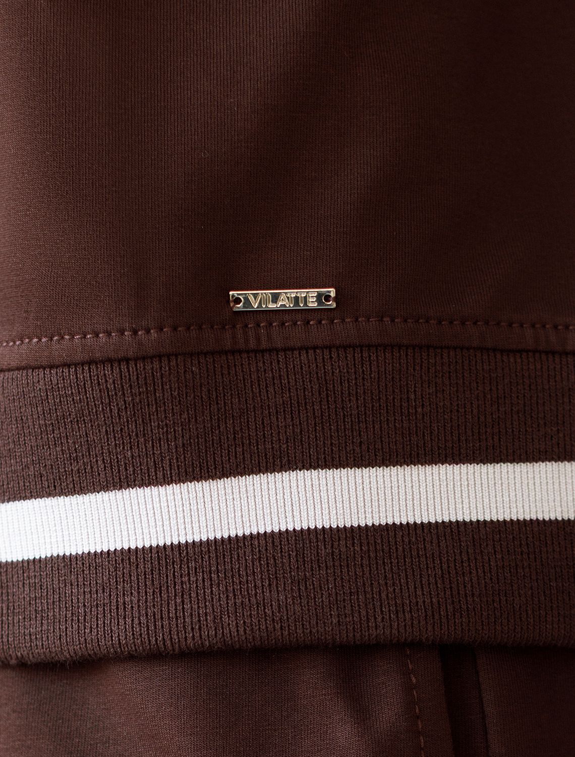 Свитшот среднего объема с V вырезом и принтом из футера двухнитки с эластаном D49.083 коричневый