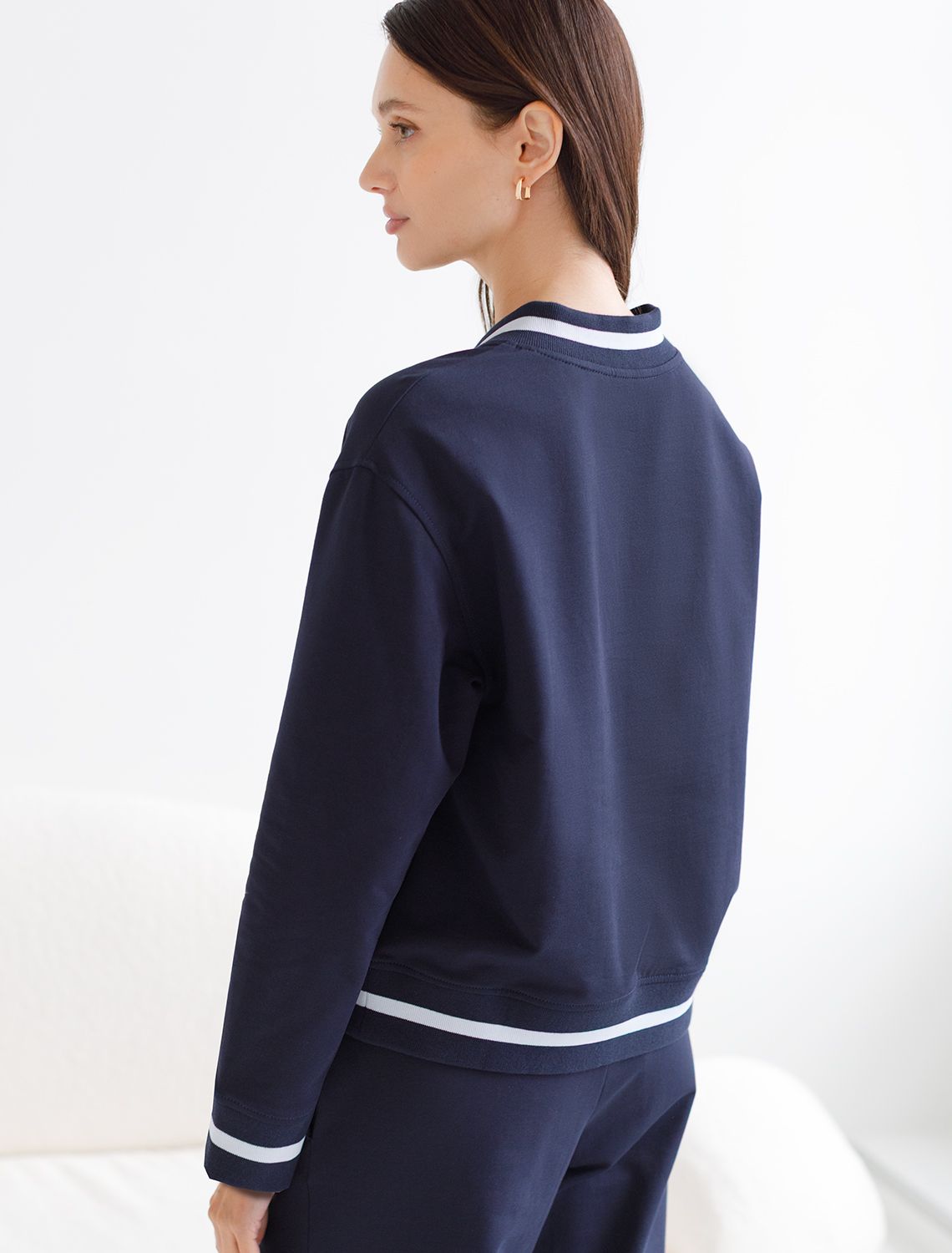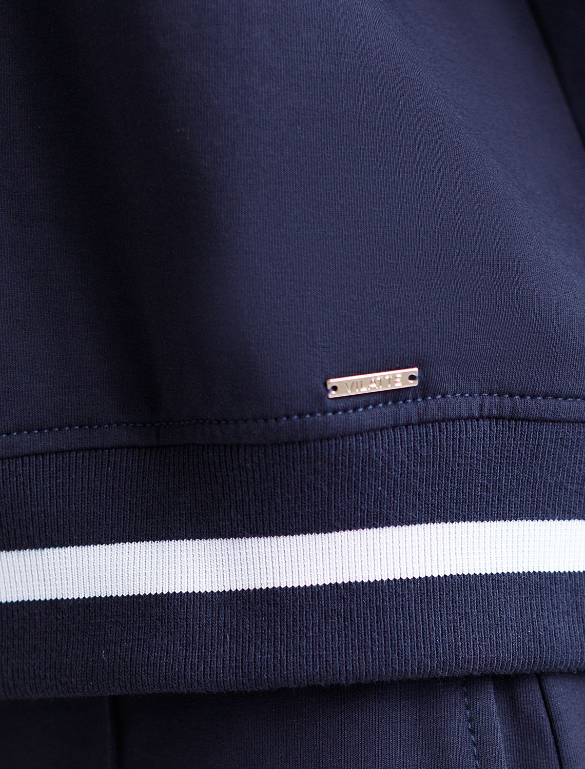 Свитшот среднего объема с V вырезом и принтом из футера двухнитки с эластаном D49.083 т.синий