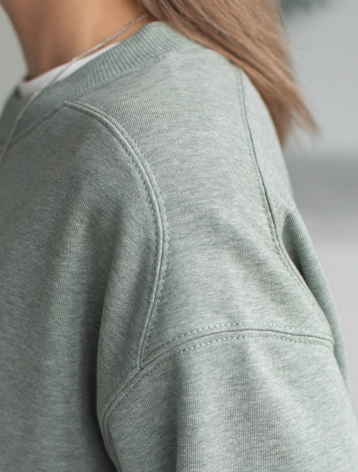 Свободный свитшот оливкового цвета с эффектом меланж выполнен из мягкого петельчатого футера двухнитки с добавлением эластана, что обеспечивает комфортную посадку и комфорт. Материал отличается мягкостью и приятной текстурой, позволяя коже дышать и обеспечивая максимальное удобство при носке, а так же хорошей износостойкостью и сохраняет форму даже после многочисленных стирок. Круглый ворот и широкие рукава средней длины придают свитшоту стильный и современный вид и делают образ расслабленным и непринужденным, такой вариант отлично сядет на большие размеры, подчеркивая достоинства фигуры. .Джемпер идеально подходит для повседневной носки и отлично подойдет тем, кто ценит удобство и свободу движений без компромиссов по стилю. Этот свитшот станет отличным выбором в прохладную погоду в комплекте с бомбером D49,141 или уютным дополнением к домашнему образу в комплекте с брюками D44.157