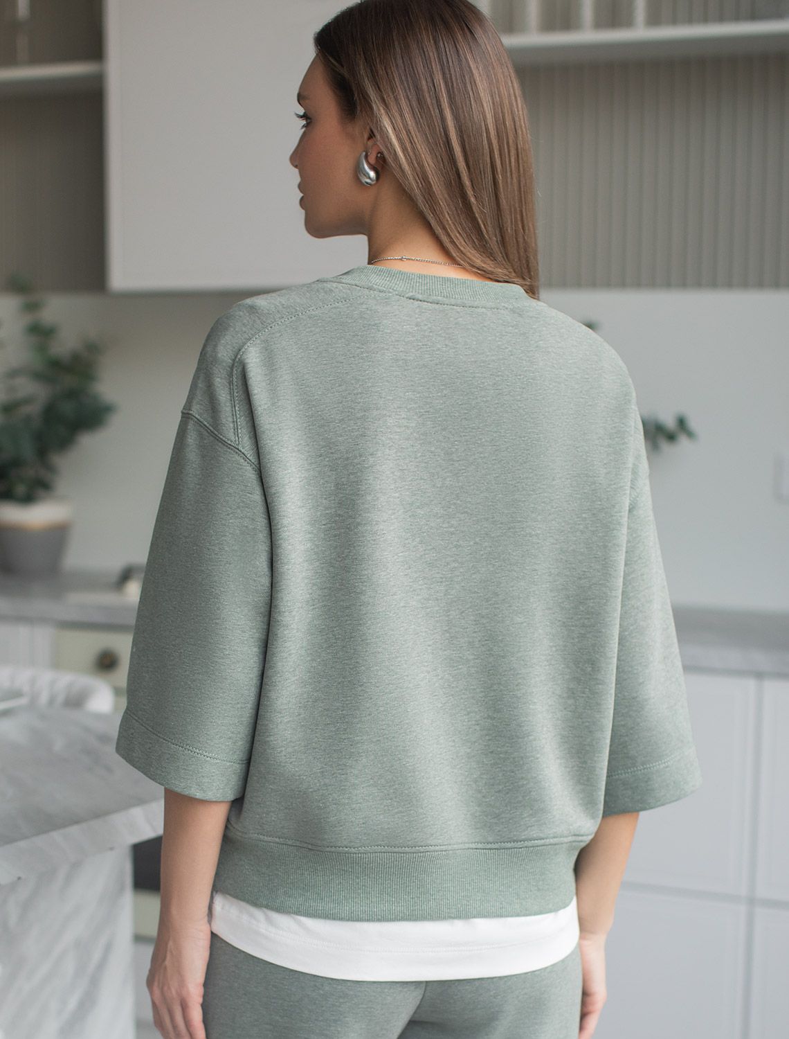 Свитшот свободный из петельчатого футера двухнитки с эластаном D49.139 оливковый меланж