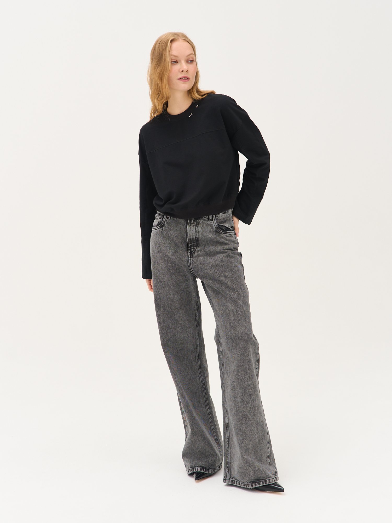 Свитшот укороченный с декором "Уголь" женский