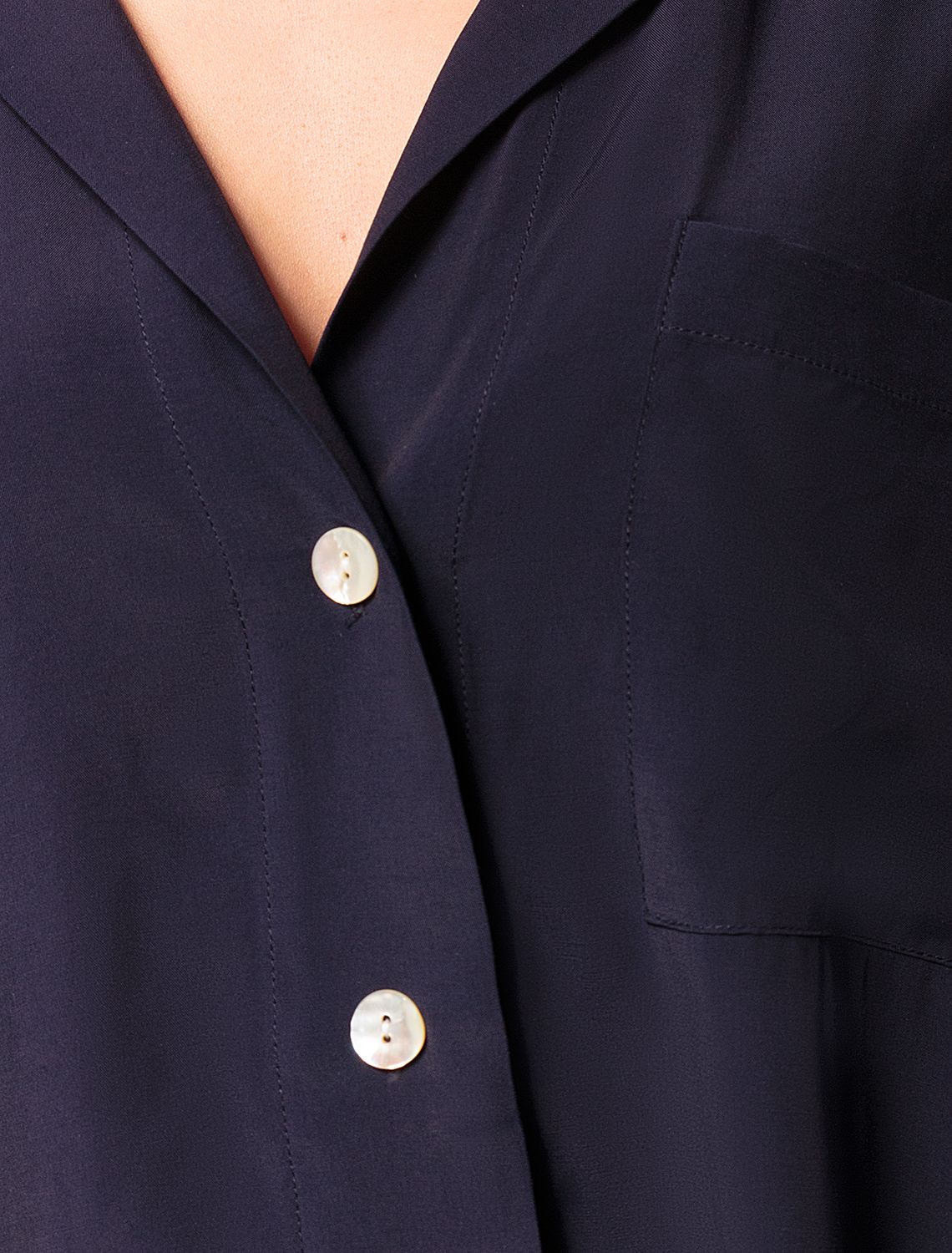 Удлиненная блузка свободного кроя выполнена из премиальной вискозы и лиоцелла. Застежка на пуговицы из натурального перламутра. Приятная на ощупь ткань охлаждает кожу в жаркую погоду. Отлично впишется в нестрогий офисный дресс-код или в расслабленном повседневном образе с джинсами и юбками. На спинке фирменный логотип бренда. т.синий