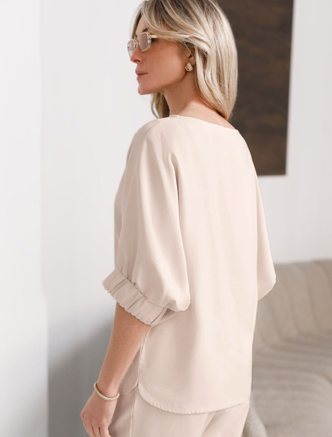 Свободная блузка с вырезом лодочка из плотного лиоцелла
