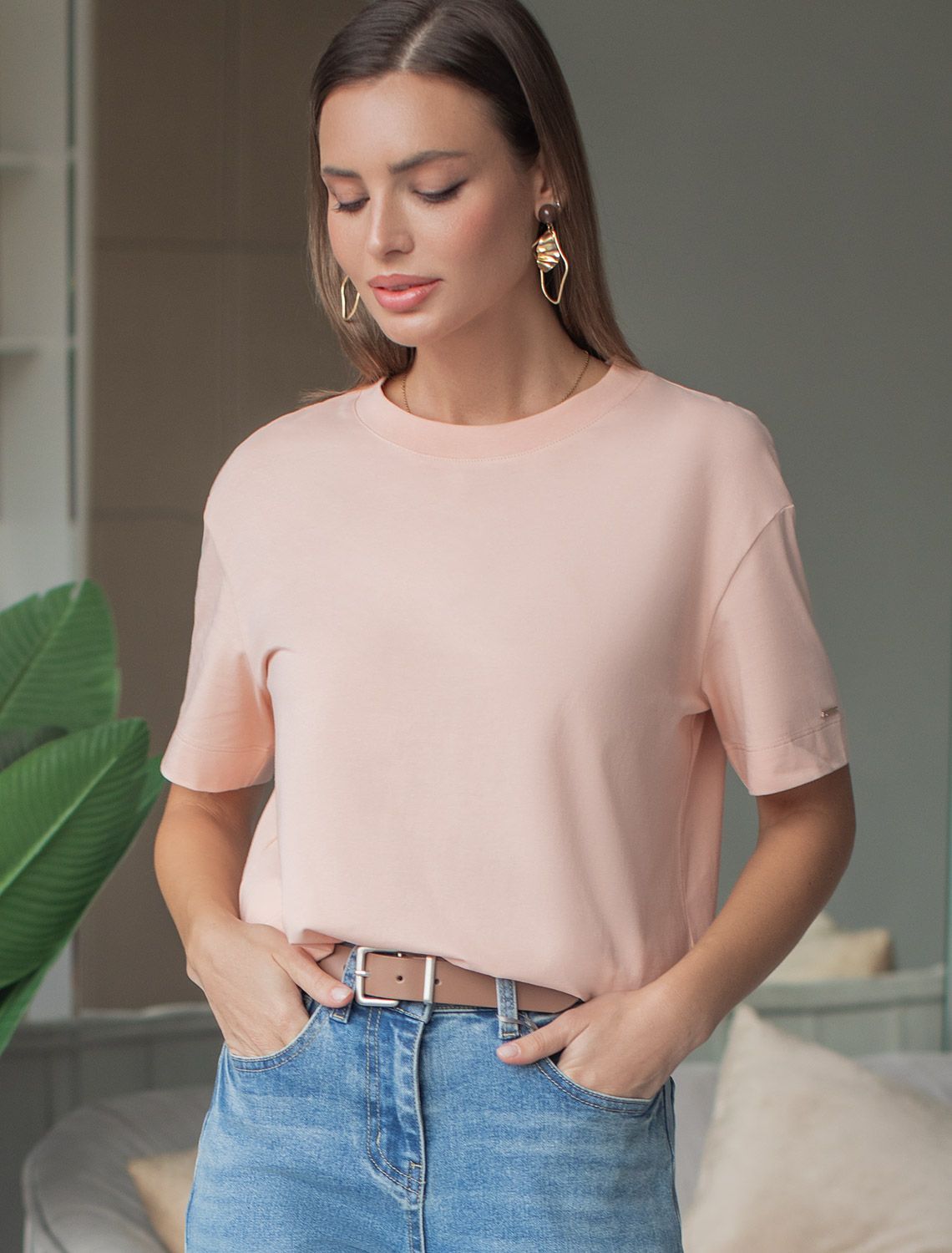 92%Хлопок 8%ПУ Свободная футболка пудрового цвета из премиального хлопка плотностью 170 Г/м2 станет универсальным решением для создания стильного и комфортного образа. Футболка прямого кроя идеально садится на любую фигуру, обеспечивая свободу движений. Дышащая ткань из натурального хлопка делает изделие легким и приятным к телу, что особенно важно в теплое время года, отлично пропускает воздух и не вызывает дискомфорта при длительном ношении. Модная футболка добавляет яркости образу, сохраняя баланс между минимализмом и выразительностью.