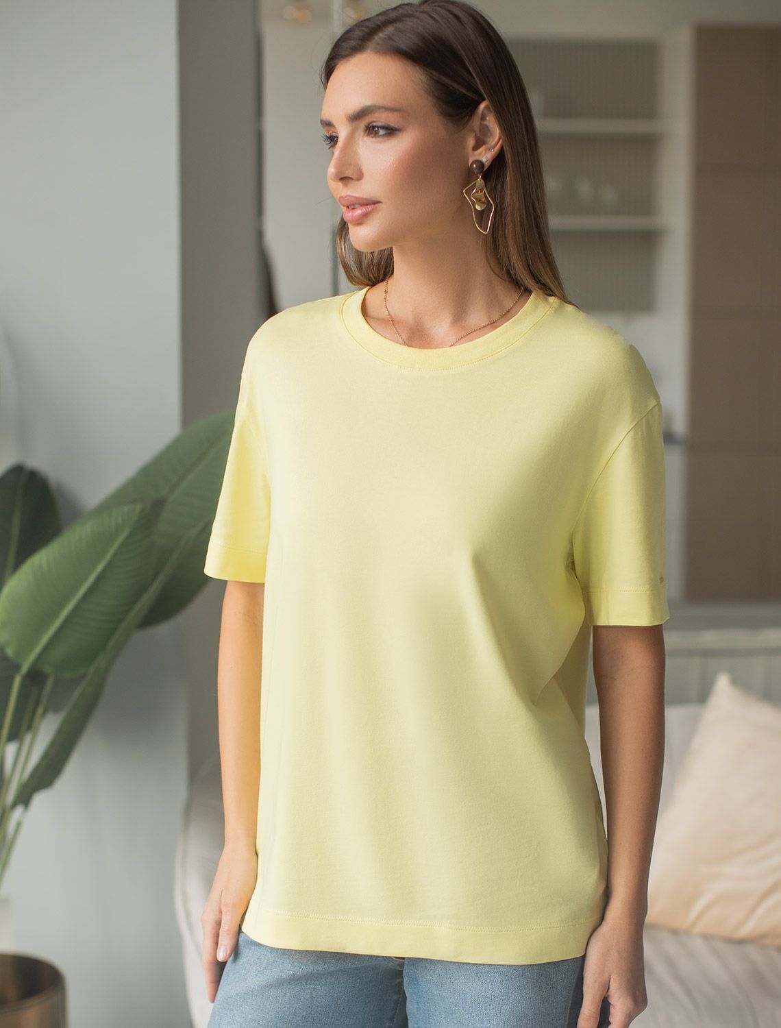Актуальные цвета подчеркивают современность футболки, делая ее отличным вариантом как для повседневной носки, так и более праздничных случаев. Круглый вырез горловины дополняет общий минималистичный дизайн изделия, создавая аккуратный силуэт. Такой фасон уместен для работы в офисе, для городского стиля, дома, в неформальной обстановке или даже на деловых встречах.