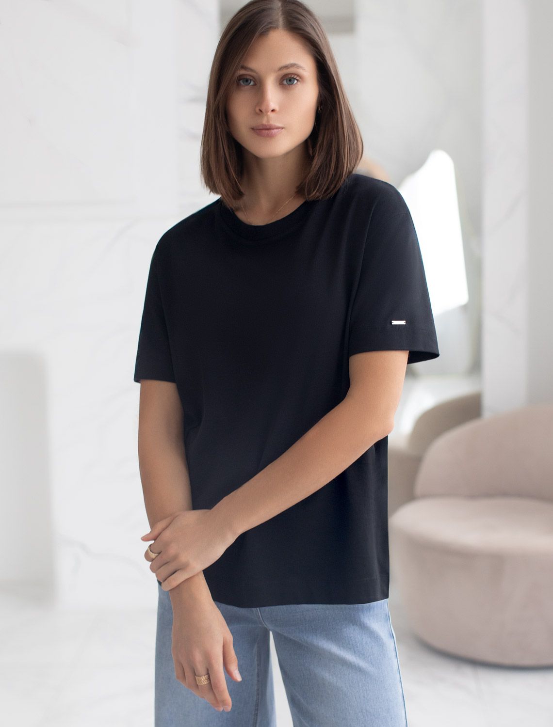 Свободная футболка из премиального хлопка с эластаном D49.144 черный