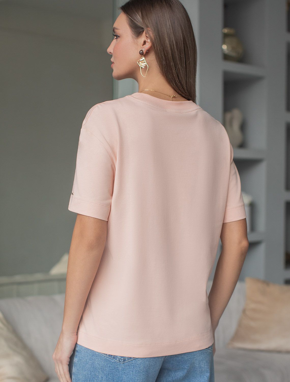 Свободная футболка из премиального хлопка с эластаном D49.144 пудра