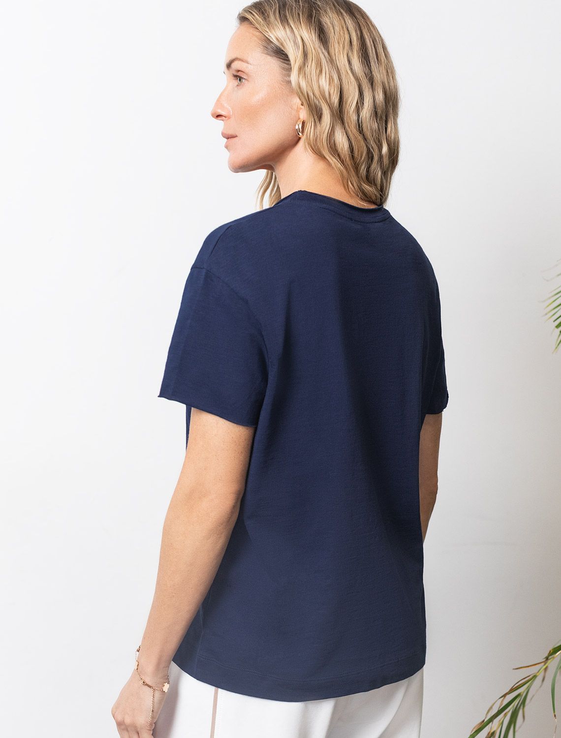 Свободная футболка темно-синего цвета выполнена из фактурного трикотажа плотностью 140 Г/м2. Текстура материала создает интересный эффект с характерными горизонтальными "штрихами", создаваемыми использованием нитей разной плотности, что делает повседненую футболку особенно стильной, при этом она идеальна для жаркой летней погоды и позволяет чувствовать легкость и удобство. Футболка прямого кроя отлично садится на любую фигуру, обеспечивая свободу движений. Дышащая ткань из натурального 100% хлопка пропускает воздух и не вызывает дискомфорта при длительном ношении. Модная футболка с принтом добавляет яркости образу, сохраняя баланс между минимализмом и выразительностью. Принт в виде листьев нанесен красками с устойчивым покрытием. Базовая футболка хорошо держит форму и гарантирует долговечность даже при частой носке. Подходит для больших размеров до 56 включительно, свободная посадка позволяет чувствовать себя уверенно в любой ситуации. Это выбор для тех, кто ценит удобство без ущерба стилю. Мягкость материала делает футболку подходящей даже для беременных женщин или обладательниц чувствительной кожи. Актуальные цвета подчеркивают современность футболки, делая ее отличным вариантом как для повседневной носки, так и более праздничных случаев. Круглый вырез горловины дополняет общий минималистичный дизайн футболки, создавая аккуратный силуэт. Такой фасон уместен для работы в офисе, для городского стиля, дома, в неформальной обстановке или даже на деловых встречах.