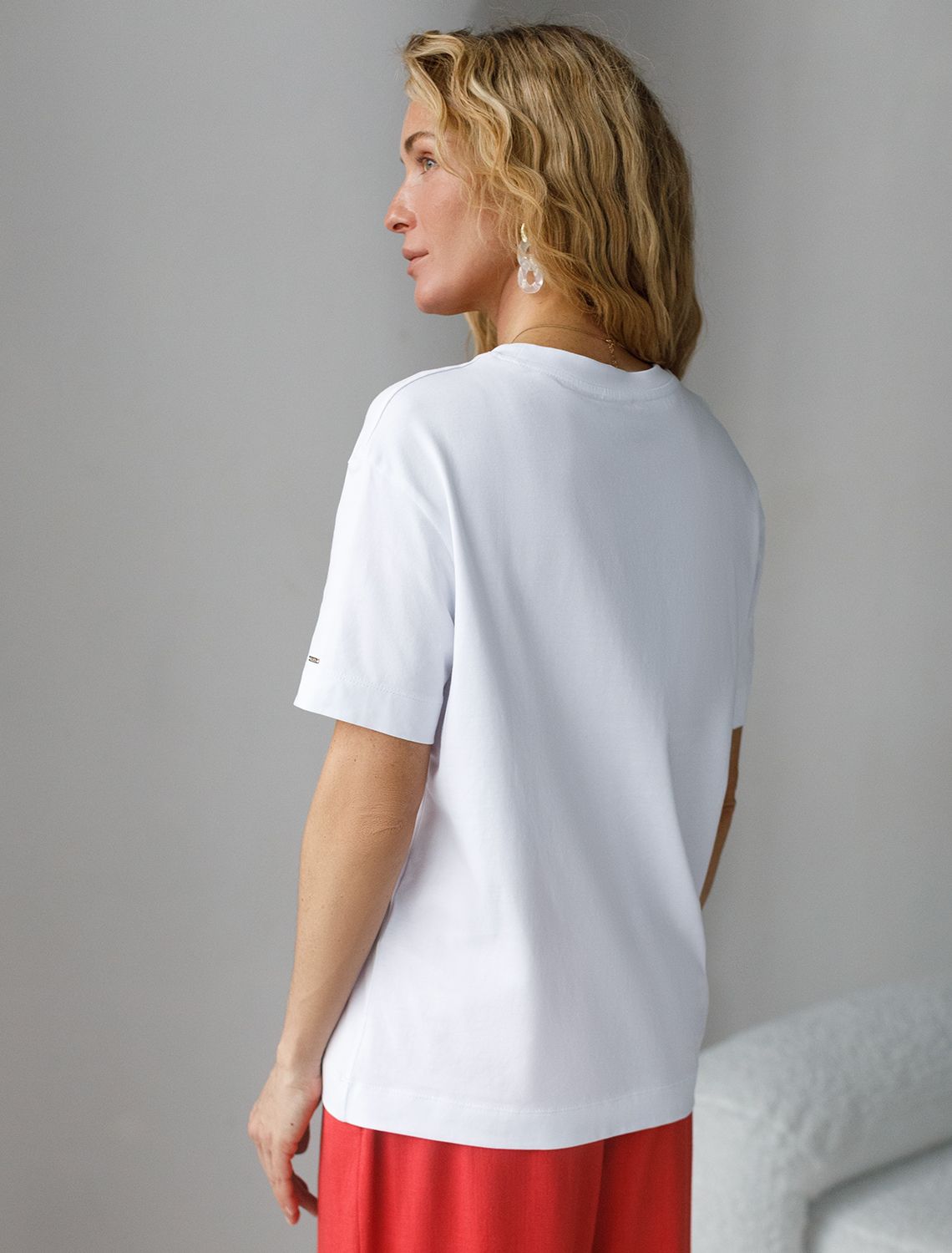 Свободная футболка с принтом из премиального хлопка с эластаном D49.145 белый_spicy