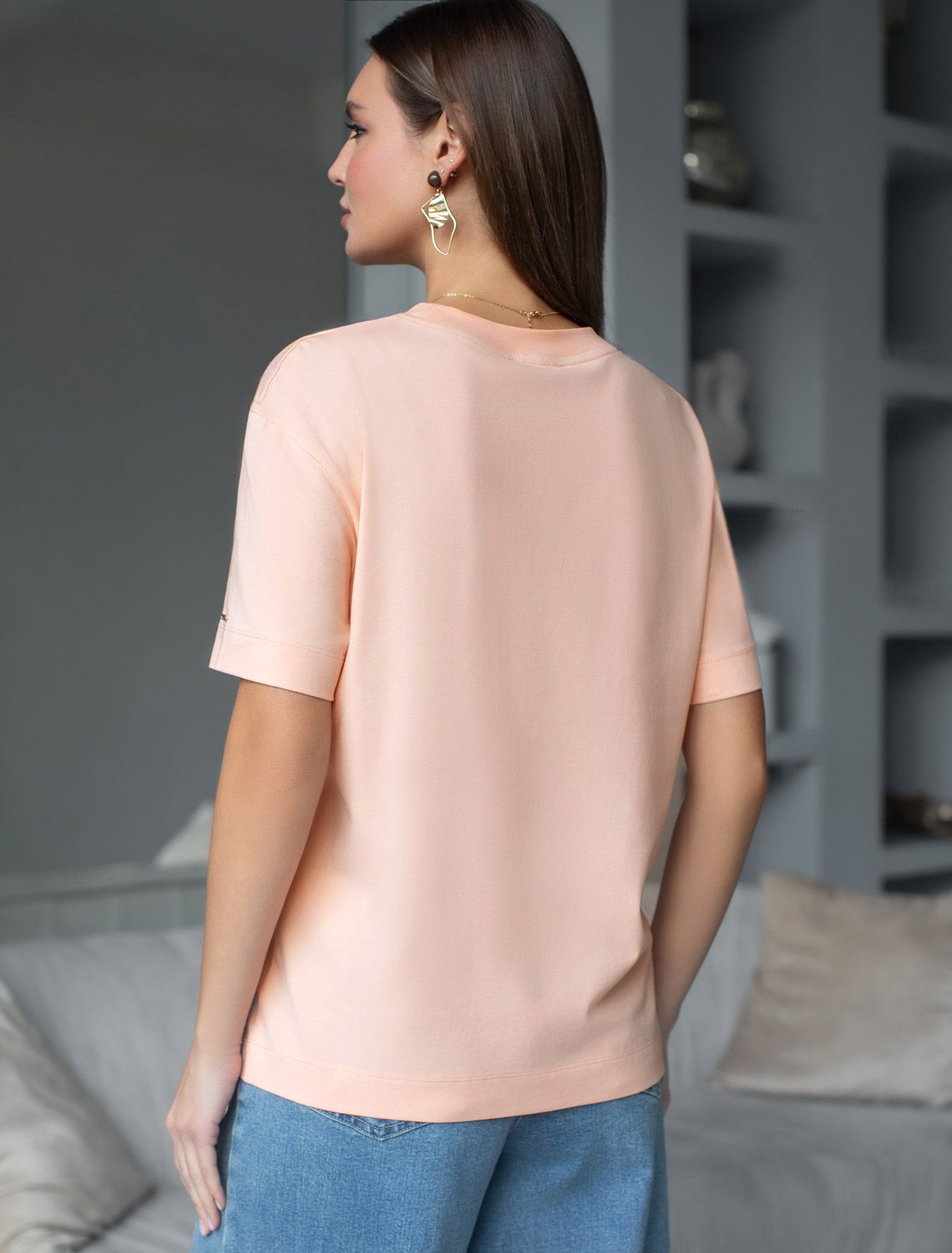 Свободная футболка с принтом из премиального хлопка с эластаном D49.145 пудра_everyday