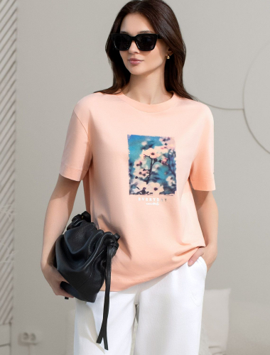 Свободная футболка с принтом из премиального хлопка с эластаном