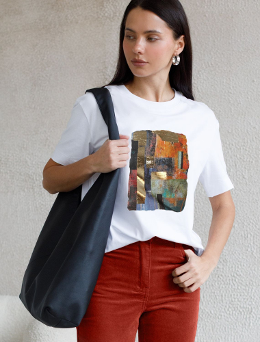 92%Хлопок 8%ПУ Модная футболка белого цвета привлекает внимание своим интересным дизайном и ярким принтом. Благодаря прямому крою изделие комфортно садится на любую фигуру, в том числе на большие размеры, и не сковывает движений. Круглый вырез подчеркивает современный стиль, а натуральный материал из хлопка с добавлением эластана обеспечивает удобство в повседневной носке и приятные тактильные ощущения. Прочность и износостойкая структура позволяют сохранять свежий внешний вид после множества стирок. Принт в виде яркой абстракции нанесен красками с устойчивым покрытием. Стильная футболка гармонично вписывается в любой гардероб и подойдет для прогулок, отдыха или неформальных встреч. Благодаря особенностям кроя модель хорошо сидит, скрывая недостатки и подчеркивая достоинства. Яркая футболка идеально сочетается с базовыми вещами, позволяя создавать новые интересные образы каждый день.