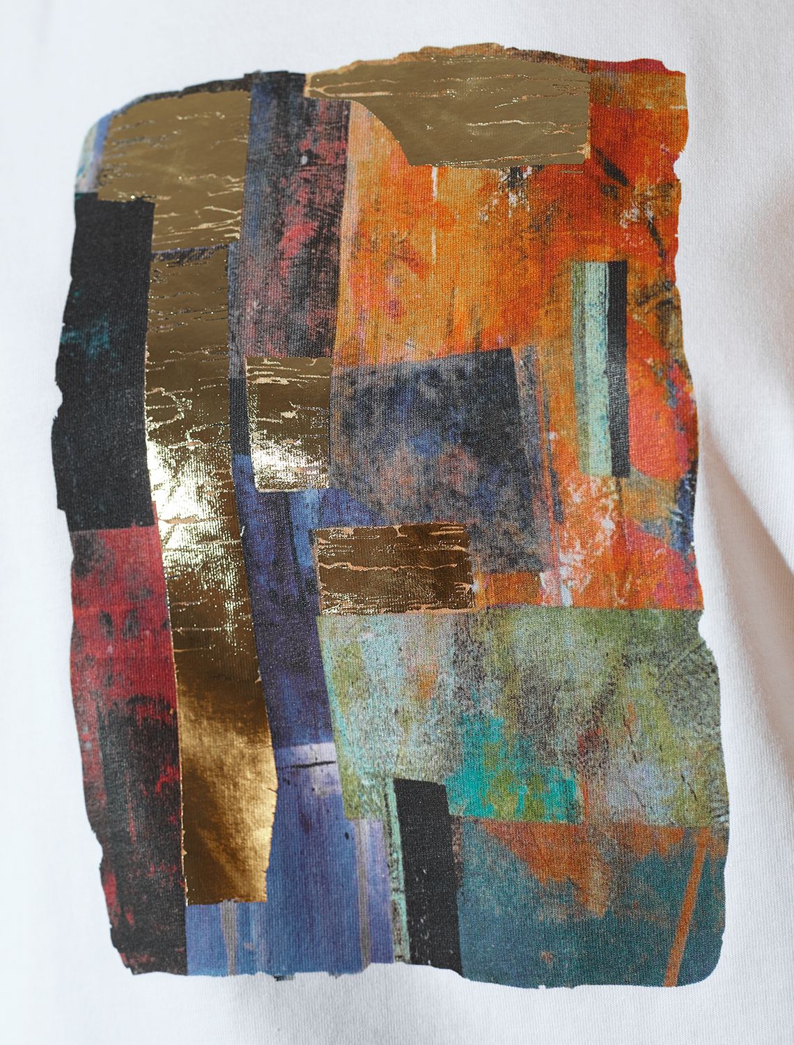 Свободная футболка с принтом из премиального хлопка с эластаном D49.145 белый_абстракция