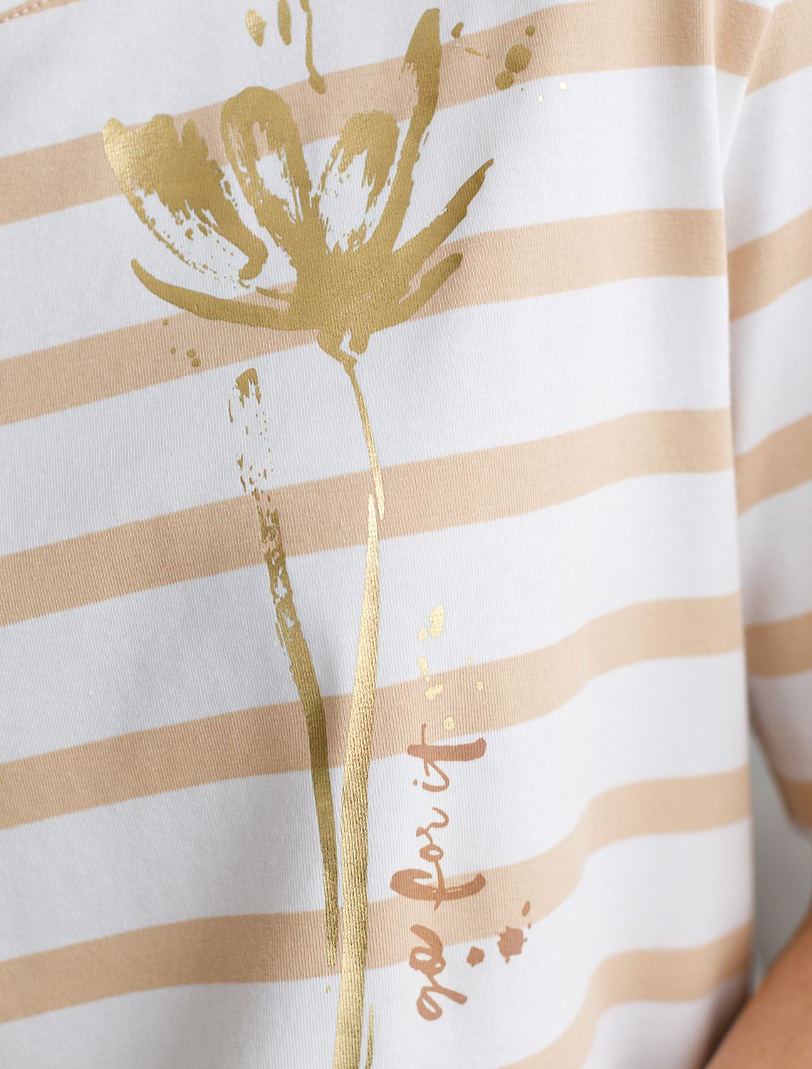 Свободная футболка с принтом из премиального хлопка с эластаном D49.145 белый-бежевый_go for it