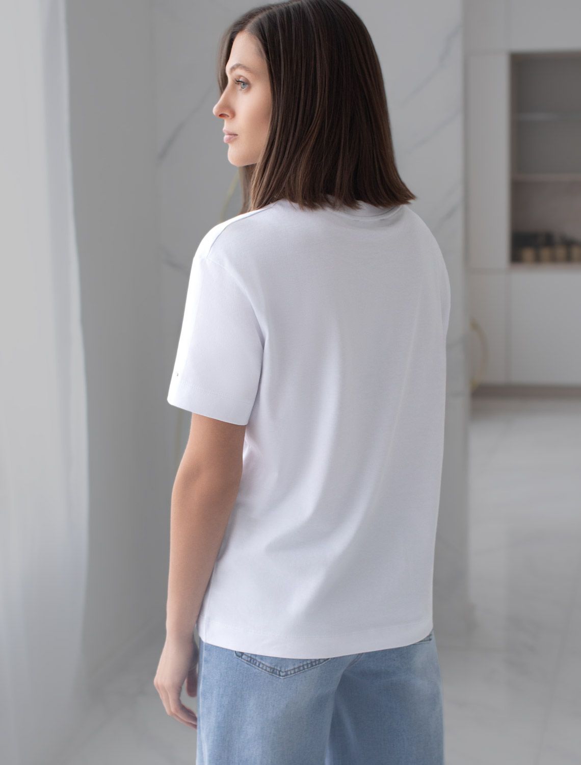 Свободная футболка с принтом из премиального хлопка с эластаном D49.145 белый_vibe
