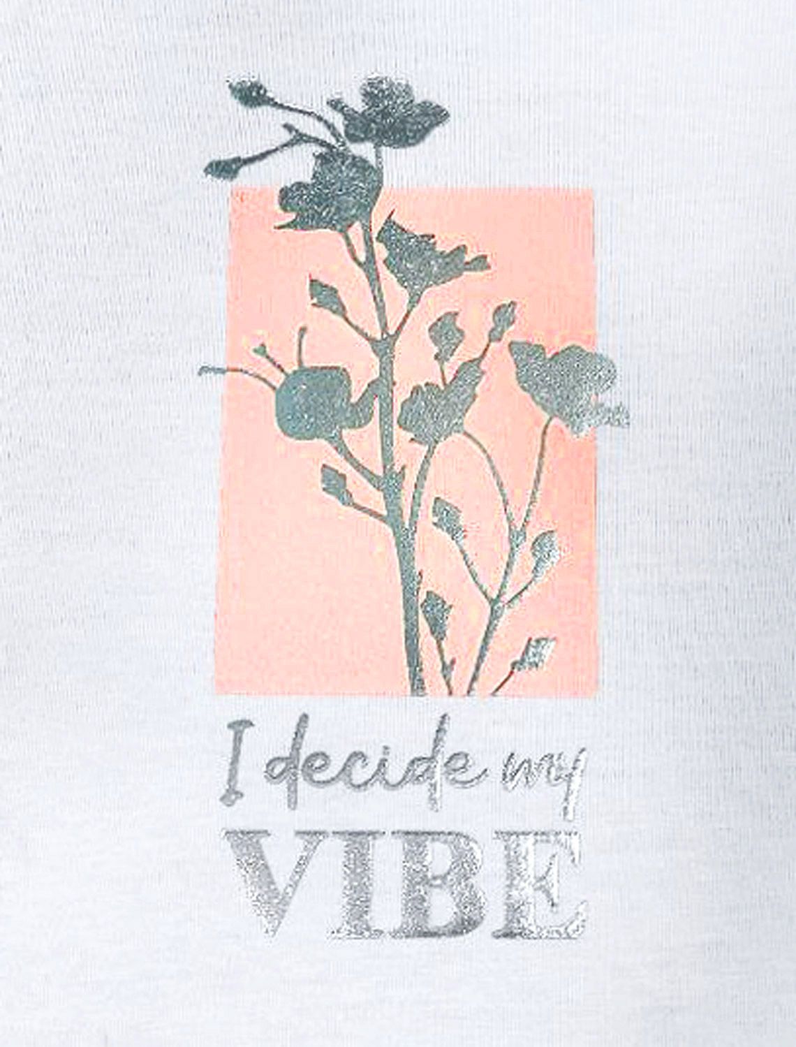 Модная футболка белого цвета привлекает внимание своим интересным дизайном и ярким принтом. Благодаря прямому крою изделие комфортно садится на любую фигуру, в том числе на большие размеры, и не сковывает движений. Круглый вырез подчеркивает современный стиль, а натуральный материал из хлопка с добавлением эластана обеспечивает удобство в повседневной носке и приятные тактильные ощущения. Прочность и износостойкая структура позволяют сохранять свежий внешний вид после множества стирок. Принт в виде цветов и надписи нанесен красками с устойчивым покрытием, перевод надписи: I decide my vibe - Я определяю свое настроение.Стильная футболка гармонично вписывается в любой гардероб и подойдет для прогулок, отдыха или неформальных встреч. Благодаря особенностям кроя модель хорошо сидит, скрывая недостатки и подчеркивая достоинства. Яркая футболка идеально сочетается с базовыми вещами, позволяя создавать новые интересные образы каждый день.