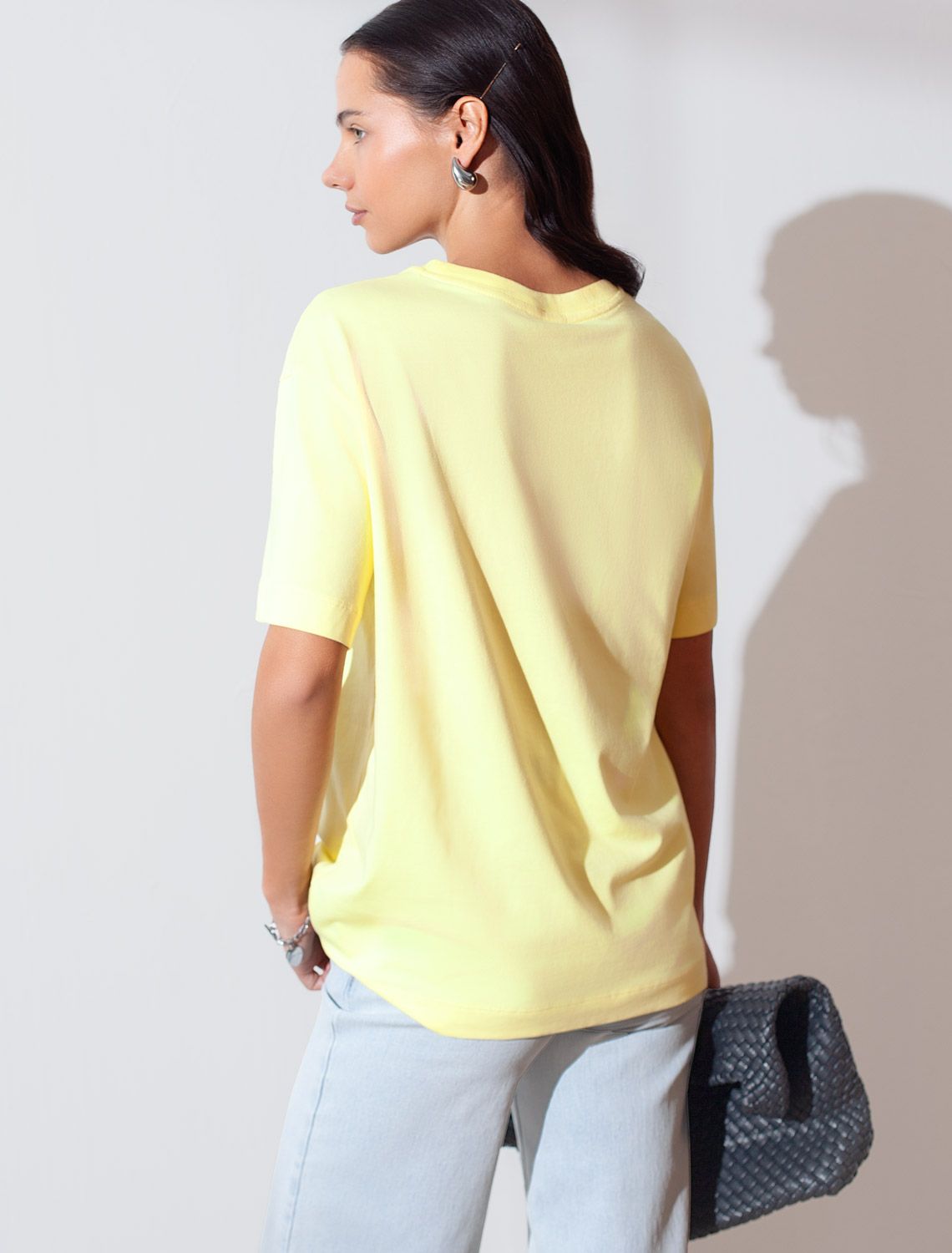 Свободная футболка с принтом из премиального хлопка с эластаном D49.145 лимонный_vilatte