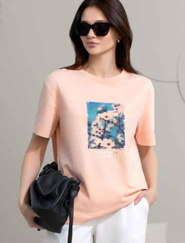 Свободная футболка с принтом из премиального хлопка с эластаном D49.145 пудра_vibe