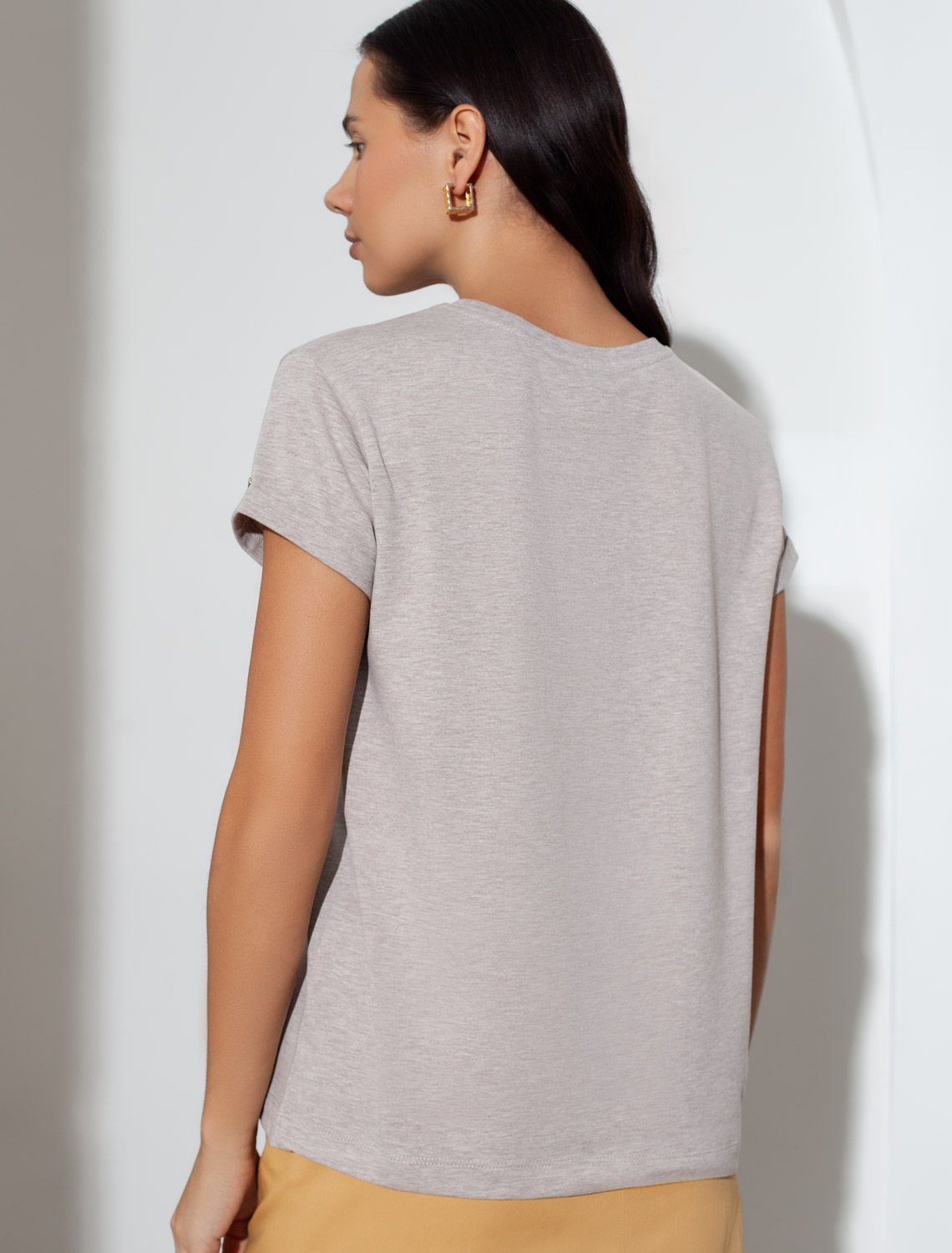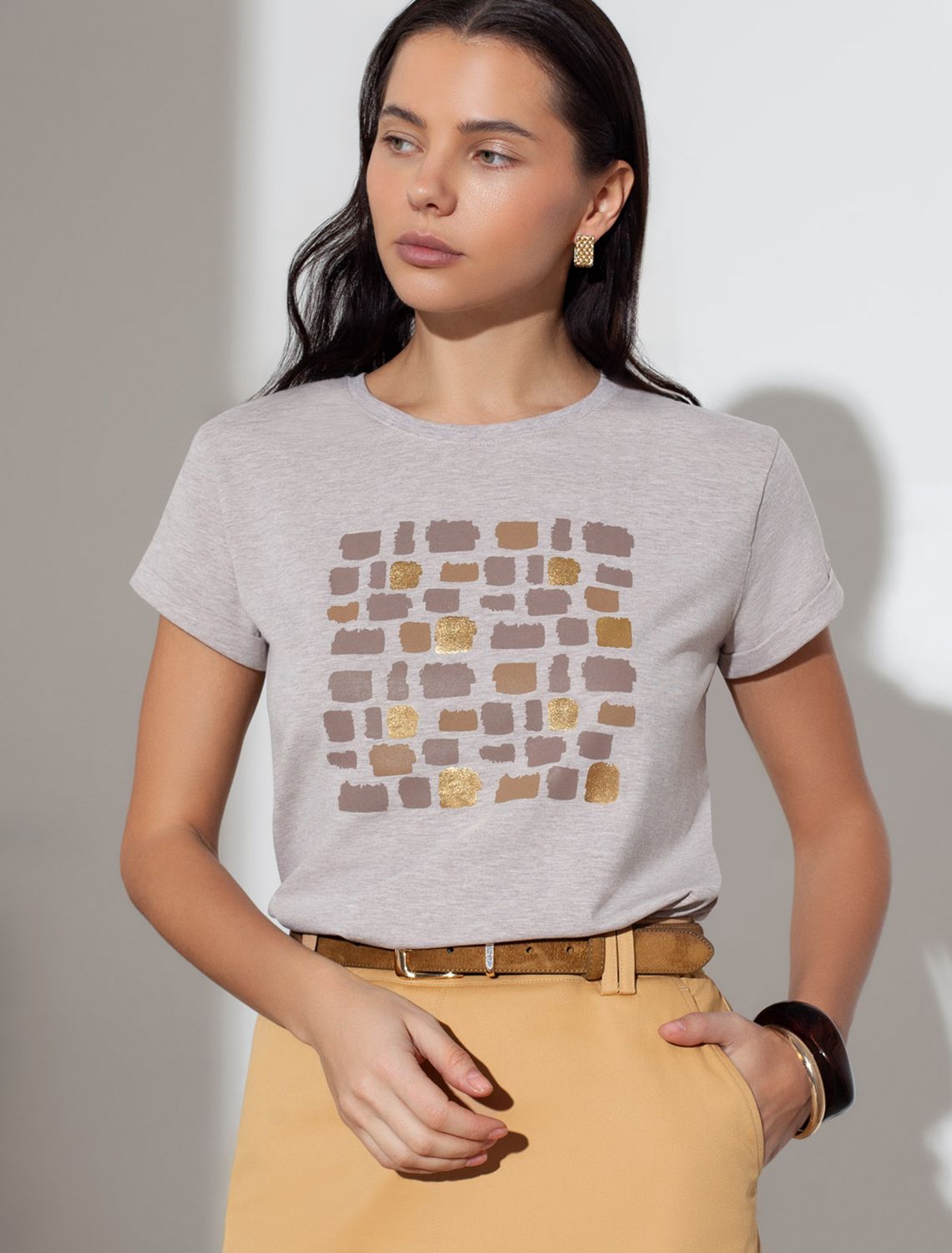 Свободная футболка с принтом из премиального хлопка с эластаном D49.146 кофейный меланж_блики