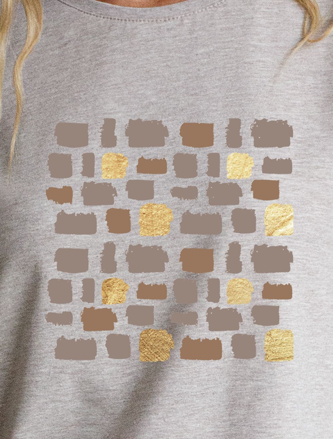 Модная футболка кофейного цвета привлекает внимание своим интересным дизайном и ярким принтом. Благодаря прямому крою изделие комфортно садится на любую фигуру, в том числе на большие размеры, и не сковывает движений. Круглый вырез подчеркивает современный стиль, а натуральный материал из хлопка с добавлением эластана обеспечивает удобство в повседневной носке и приятные тактильные ощущения. Прочность и износостойкая структура сохраняет первоначальную форму футболки после множества стирок. Рукава имеют аккуратные подгибы, что придает изделию завершенность и помогает сохранять аккуратный внешний вид. Принт в виде бликов нанесен золотистыми красками с устойчивым покрытием. Стильная футболка гармонично вписывается в любой гардероб и подойдет для прогулок, отдыха дома или неформальных встреч. Благодаря особенностям кроя модель хорошо сидит, скрывая недостатки и подчеркивая достоинства. Удобная футболка идеально сочетается с базовыми вещами, позволяя создавать новые интересные образы каждый день.