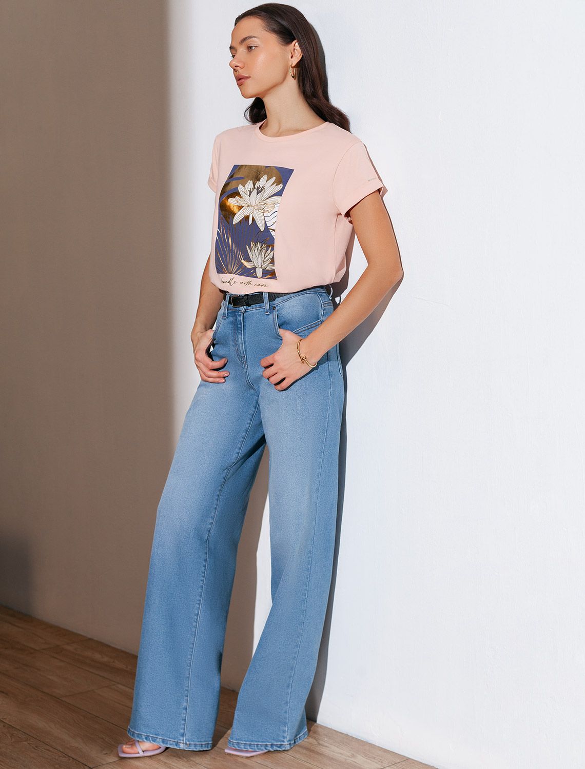 Модная футболка пудрового цвета привлекает внимание своим интересным дизайном и ярким принтом. Благодаря прямому крою изделие комфортно садится на любую фигуру, в том числе на большие размеры, и не сковывает движений. Круглый вырез подчеркивает современный стиль, а натуральный материал из хлопка с добавлением эластана обеспечивает удобство в повседневной носке и приятные тактильные ощущения. Прочность и износостойкая структура сохраняет первоначальную форму футболки после множества стирок. Рукава имеют аккуратные подгибы, что придает изделию завершенность и помогает сохранять аккуратный внешний вид. Принт в виде цветов и надписи нанесен красками с устойчивым покрытием, перевод надписи: Handle with care - Обращаться с осторожностью. Стильная футболка гармонично вписывается в любой гардероб и подойдет для прогулок, отдыха дома или неформальных встреч. Благодаря особенностям кроя модель хорошо сидит, скрывая недостатки и подчеркивая достоинства. Удобная футболка идеально сочетается с базовыми вещами, позволяя создавать новые интересные образы каждый день.