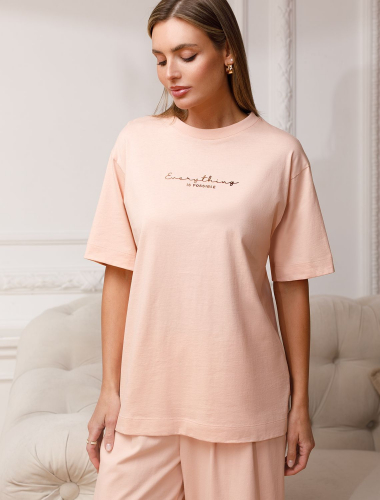Свободная футболка кофейно-пудрового цвета с V-вырезом и цельнокроеным рукавом из натурального 100% хлопка создает красивый и легкий образ для дома и отдыха. Дышащая ткань бережно заботится о коже, в то время как декольте с V-вырезом утонченно подчеркивает линию шеи, а свободный крой скрывает возможные недостатки фигуры. Трендовый змеиный принт добавляет повседневной футболке оригинальности и актуальности для любой домашней обстановки. Такая футболка отлично подойдет для тех, кто ценит комфорт и стиль одновременно. Благодаря натуральной хлопковой ткани, она идеально подходит для ежедневного использования, обеспечивая чувство легкости и свободы движений. Легкая структура материала поддерживает оптимальный микроклимат, что важно при длительном использовании. Эта футболка женственно смотрится и дарит ощущение уюта, делая ее необходимым элементом домашнего гардероба.
