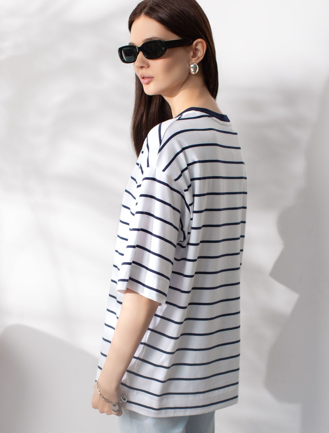 Свободная футболка в полоску из премиального хлопка с эластаном