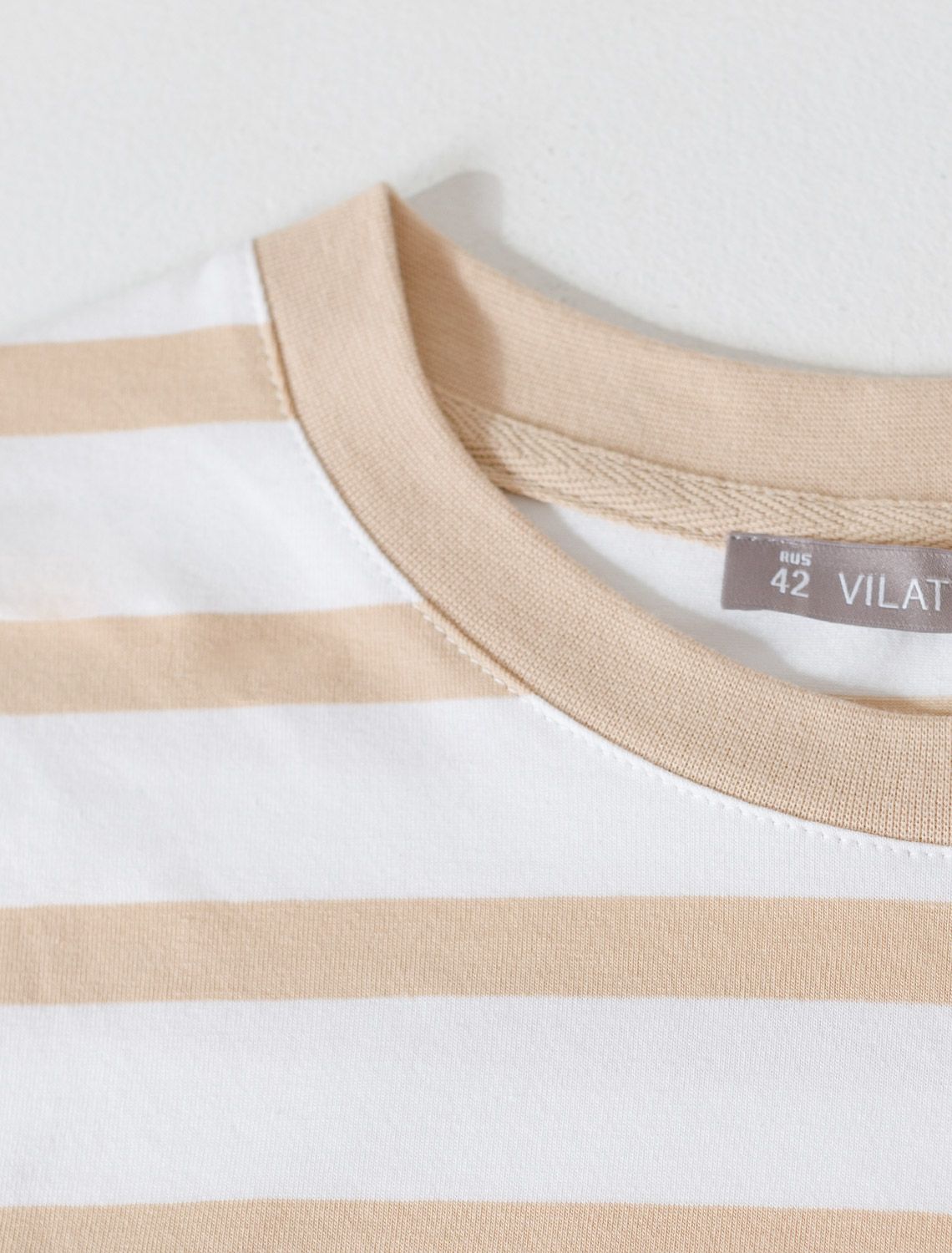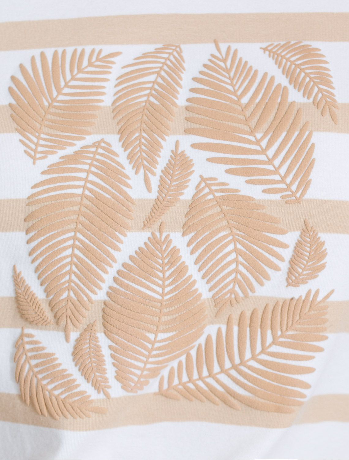 Свободная футболка в полоску с принтом из премиального хлопка с эластаном D49.145 белый-бежевый_листья