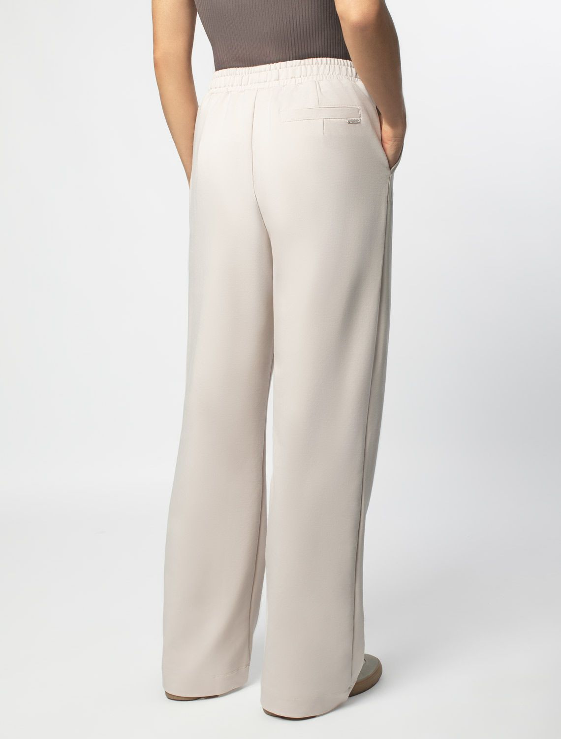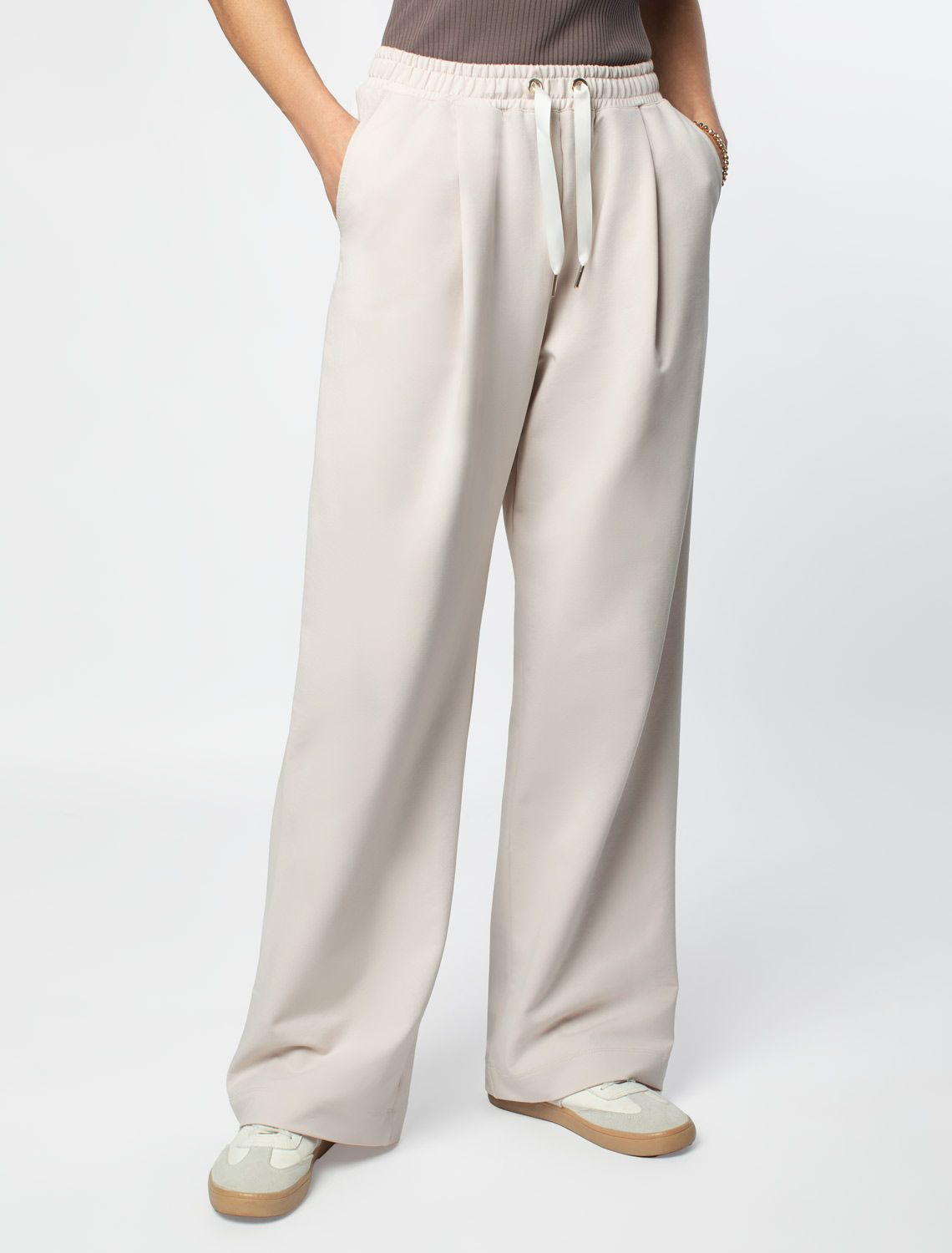 Свободные брюки из тонкого премиального футера с эластаном D44.140 бежевый