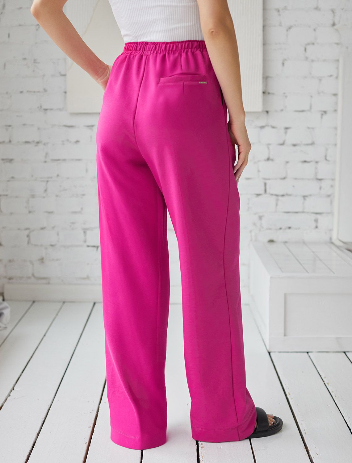 Свободные брюки из тонкого премиального футера с эластаном D44.140 фуксия