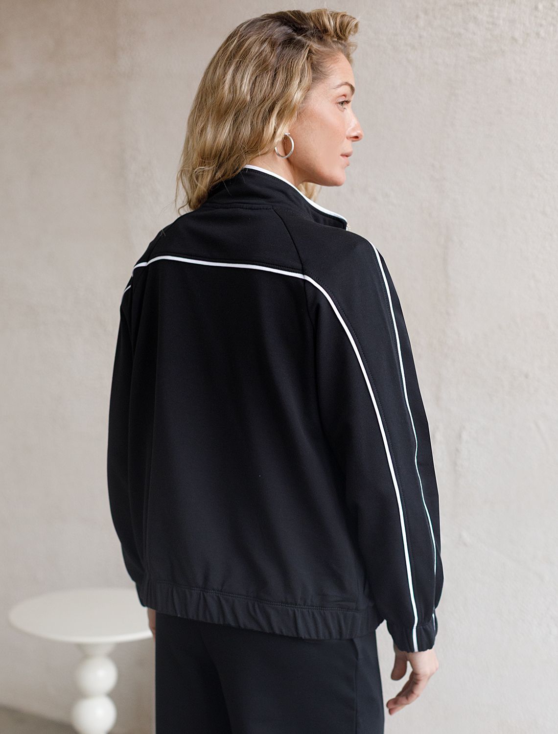 Свободный бомбер с лампасами на молнии из петельчатого футера двухнитки с эластаном D49.138 черный