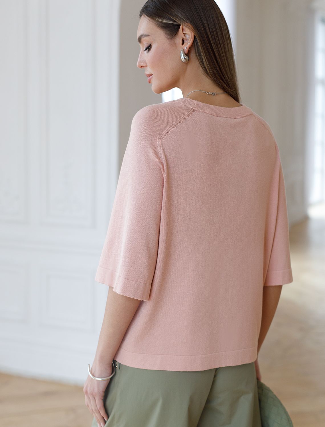 Свободный джемпер с рукавом 3/4 тонкой вязки из вискозы D39.403 пудровый