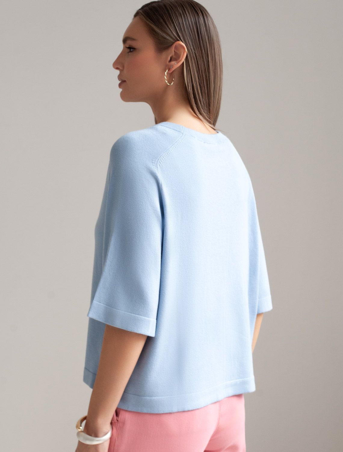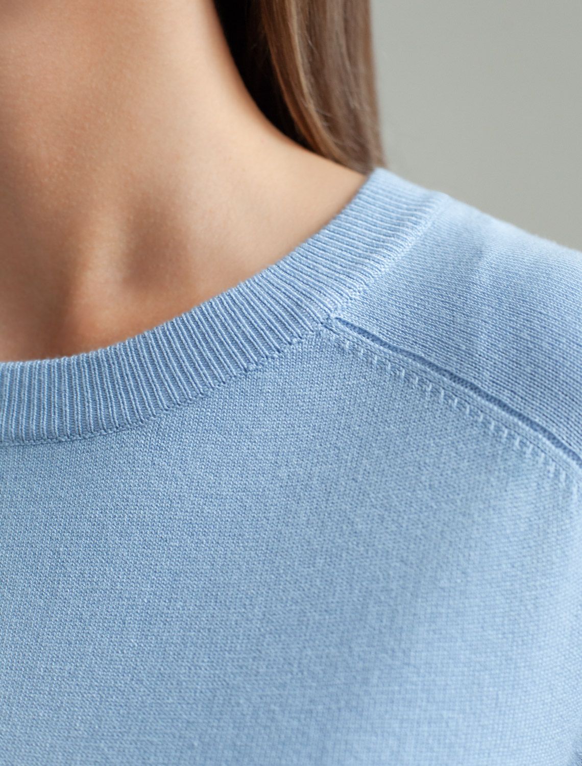 Свободный джемпер с рукавом 3/4 тонкой вязки из вискозы D39.403 светло-голубой