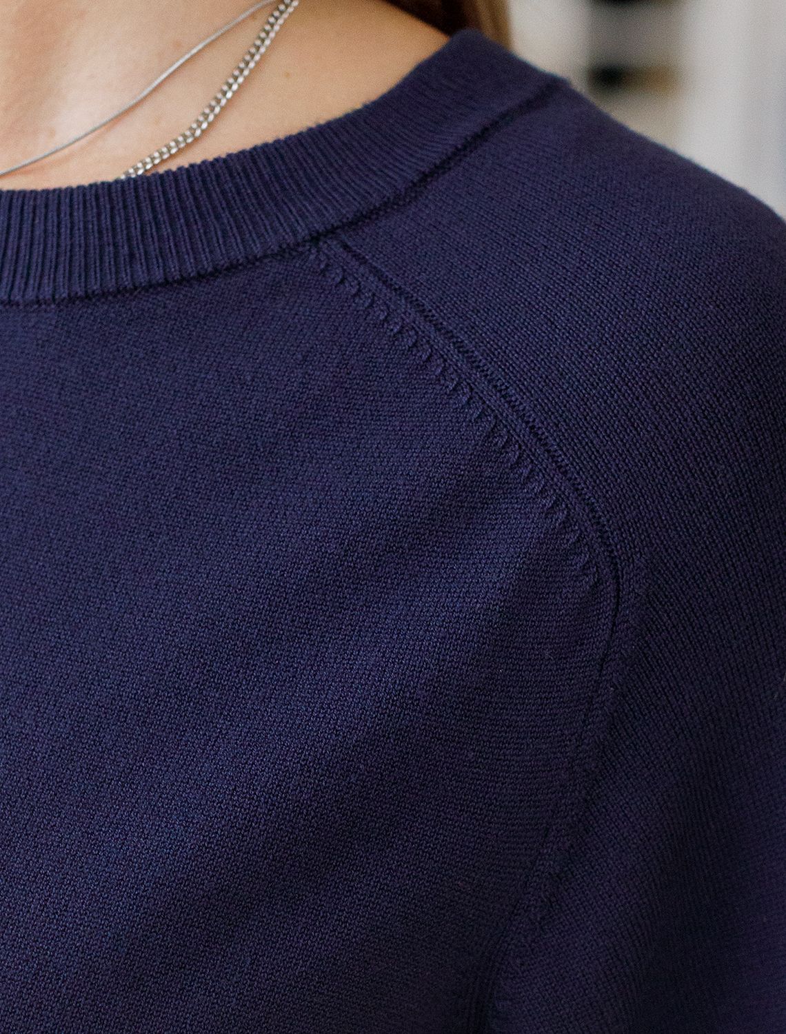 Свободный джемпер с рукавом 3/4 тонкой вязки из вискозы D39.403 темно-синий