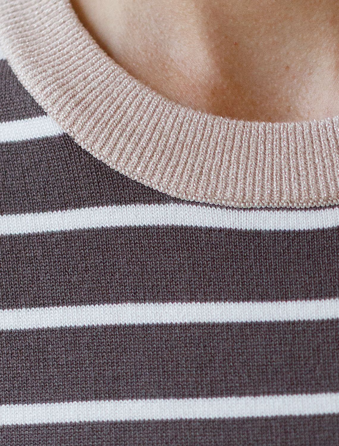 Свободный джемпер кофейного цвета в контрасную полоску из вискозы – выбор для тех, кто ценит стильный и современный образ. Благодаря средней длине и свободному крою джемпер гармонично смотрится на разных типах фигуры, а так же подходит на большие размеры, подчеркивая достоинства фигуры и скрывает возможные недостатки. Мягкая вискоза обеспечивает приятные ощущения к телу и подходит для ежедневной носки. Круглый ворот аккуратно подчеркивает линию шеи и подходит для разных вариантов укладки волос. Мягкий люрекс на контрастной отделке придает легкое мерцание, делая джемпер подходящим не только для повседневных выходов, но и для особых случаев. Принт выполнен в виде полосок, что делает классический джемпер актуальным в любом сезоне и который легко сочетается с разными стилями одежды. Рукав средней длины обеспечивает удобство и практичность в носке, позволяя использовать джемпер в прохладную погоду или для создания многослойных образов. Этот джемпер станет отличным дополнением гардероба, подчеркивая стиль и создавая легкую атмосферу непринужденности..