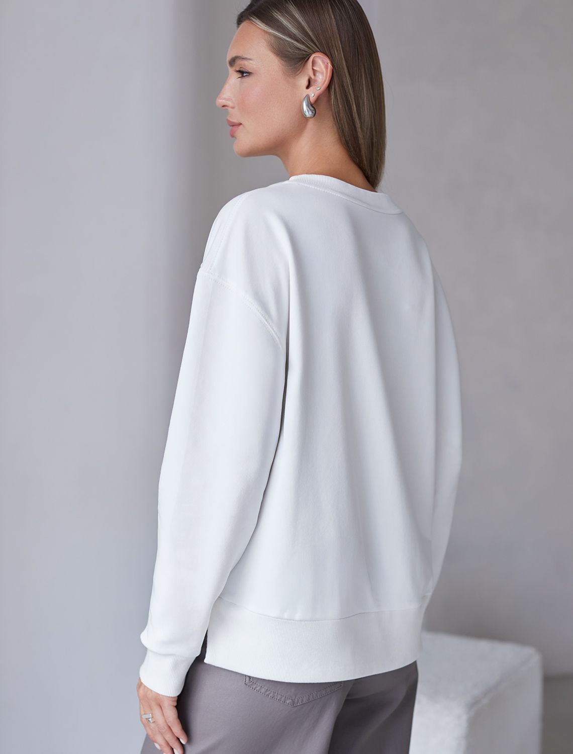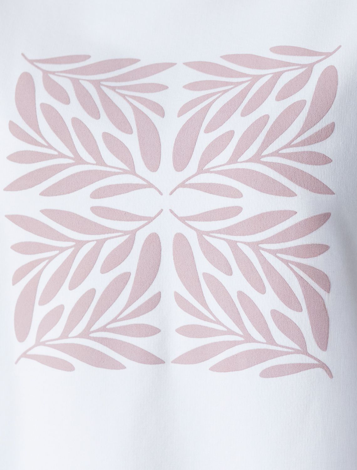 Свободный свитшот с принтом и разрезами из эластичного футера двухнитки без начеса D49.137 белый_листья