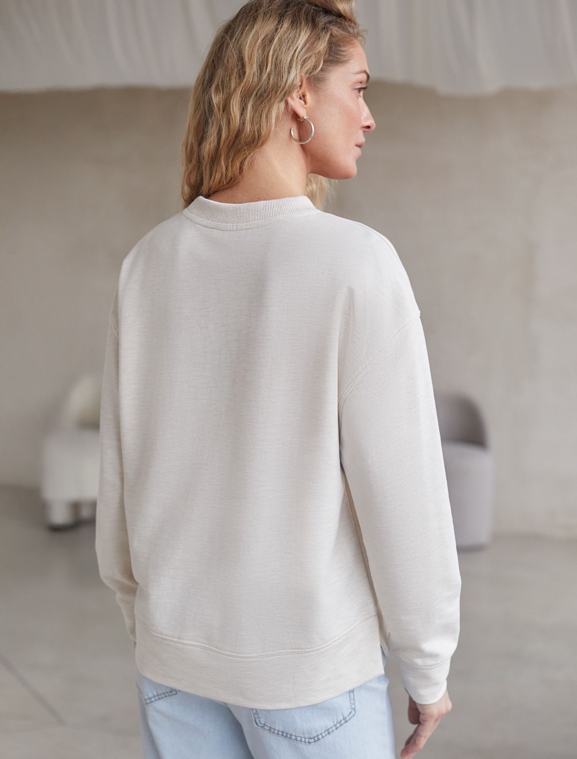 Свободный свитшот с принтом и разрезами из эластичного футера двухнитки без начеса D49.160 овсяный меланж_cotton club
