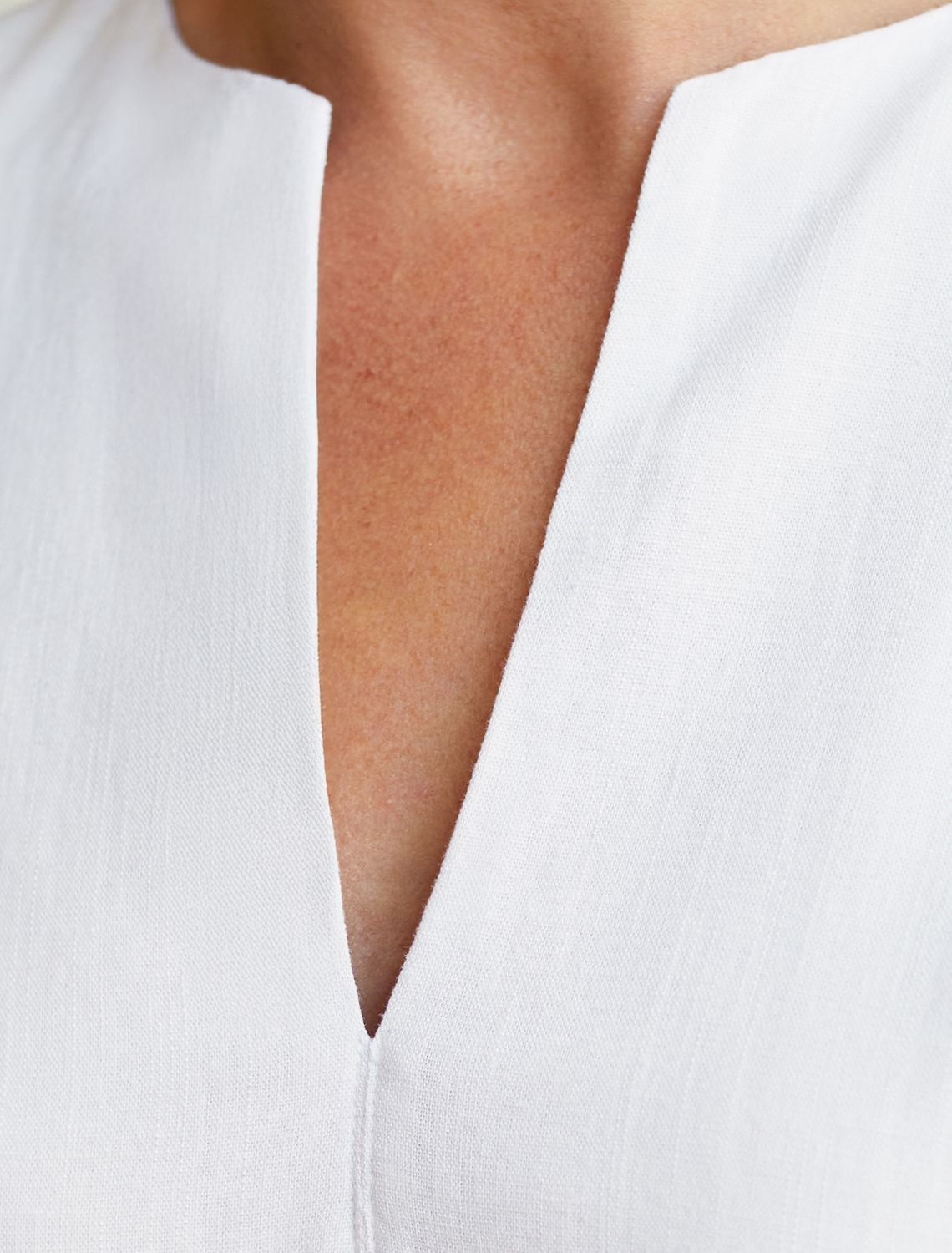 Свободный топ с V-вырезом и цельнокроеным коротким рукавом изо льна с вискозой D23.077 белый