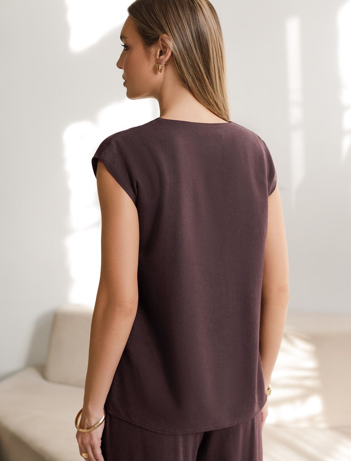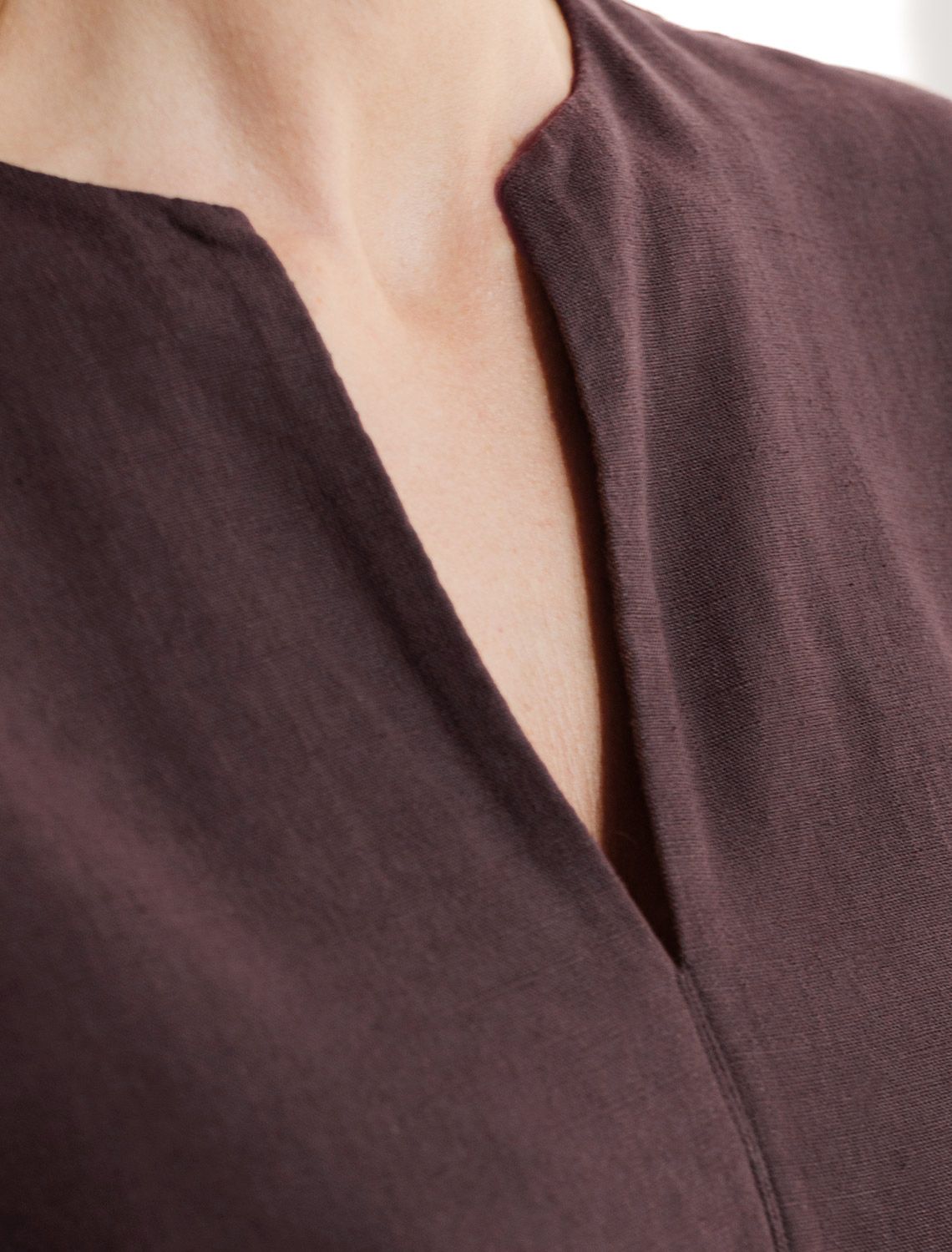 Свободный топ с V-вырезом и цельнокроеным коротким рукавом изо льна с вискозой D23.077 коричневый