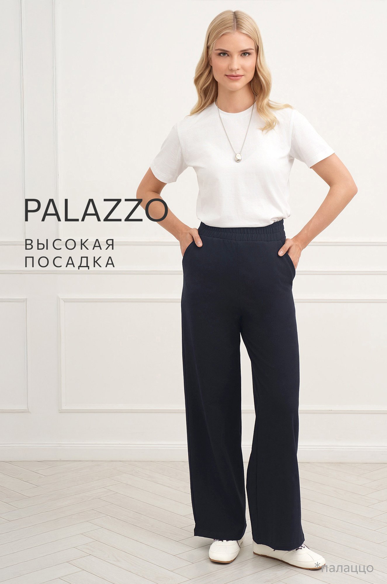 Базовые однотонные штаны палаццо подойдут для женщин, ценящих комфорт и универсальность. Широкие повседневные брюки легко комбинируются с любым гардеробом и всегда выглядят аккуратно и стильно, пригодятся на осень и весну.