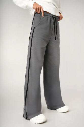 Женские широкие брюки идеальны для тех, кто хочет оставаться в тренде даже в расслабленном образе. Шнурок на поясе и удобные карманы — приятные детали, которые делают спортивки ещё удобнее и функциональнее.