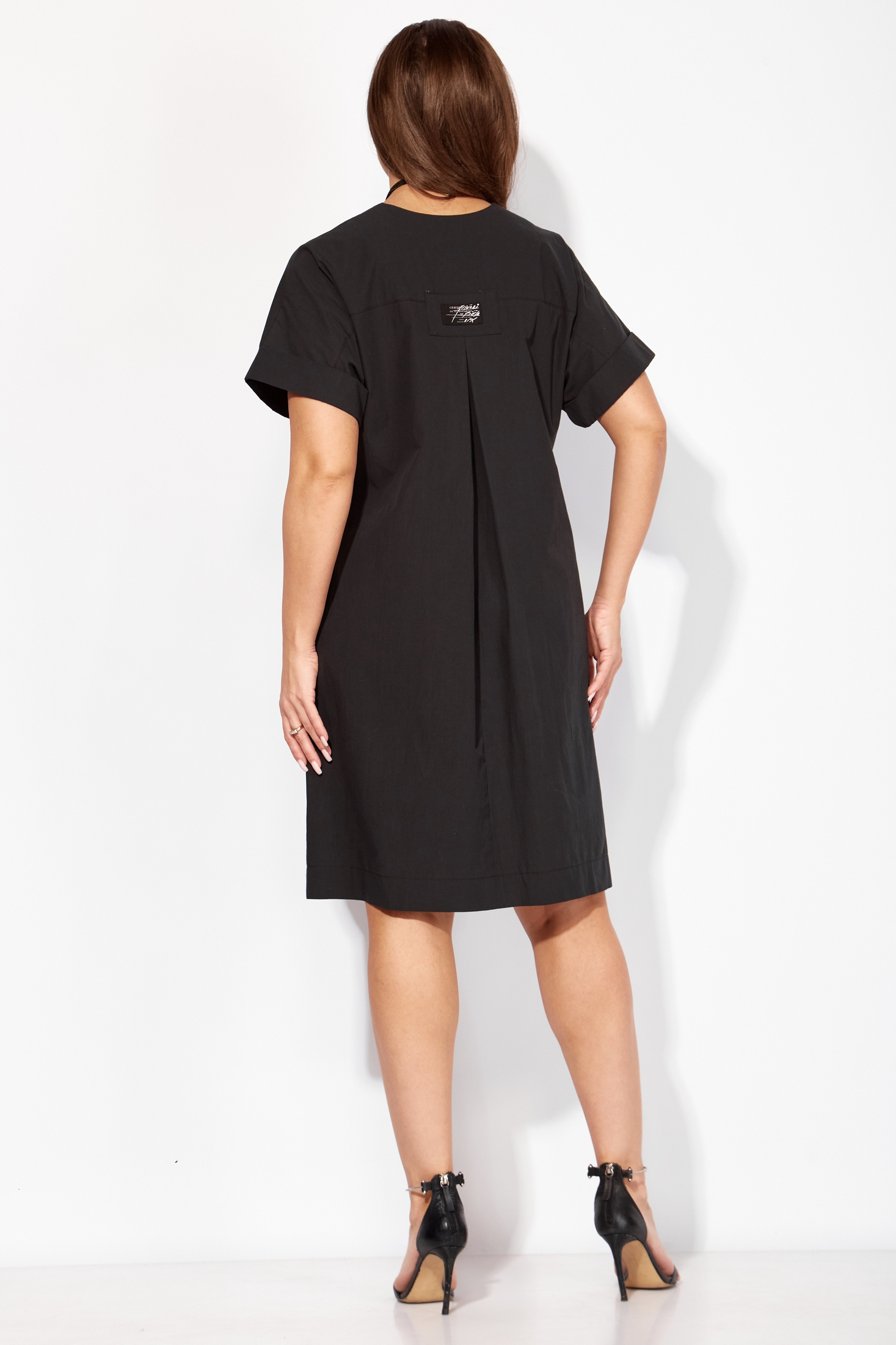 Женственное платье прямого силуэта, сшитое из 100% хлопка, что гарантирует натуральную мягкость и воздухопроницаемость. Мягкая складка по центру и отрезная кокетка на спинке создают элегантный образ, идеальный для повседневных и офисных будней. Просторные карманы, идеально вписывающиеся в общий дизайн, делают модель не только стильной, но и функциональной. Универсальный черный цвет и короткие рукава делают платье подходящим для разнообразных сезонов и событий.