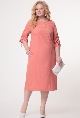 Элегантное, свободное, красивое платье может подойти как для торжественного случая, так и для повседневной носки. Прямое, с интересным дизайном. С вертикальным рельефом, переходящим в карманы, с косой планкой с одной стороны и пуговицами. По рукаву проходит сборка.