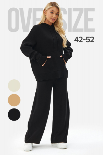 Теплый женский костюм оверсайз с брюками позволит выглядеть женственно даже в холода. Костюм выполнен из приятного к телу вязаного хлопкового трикотажа, он прекрасно сохраняет тепло – идеальная база для прохладной осени и весны. В комплекте one size джемпер и прямые свободные брюки. Бежевый костюм – сочетание элегантности и невероятного уюта.