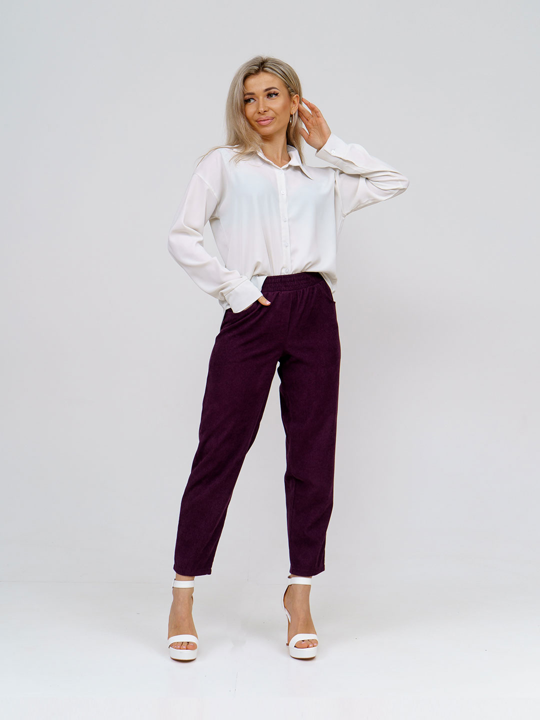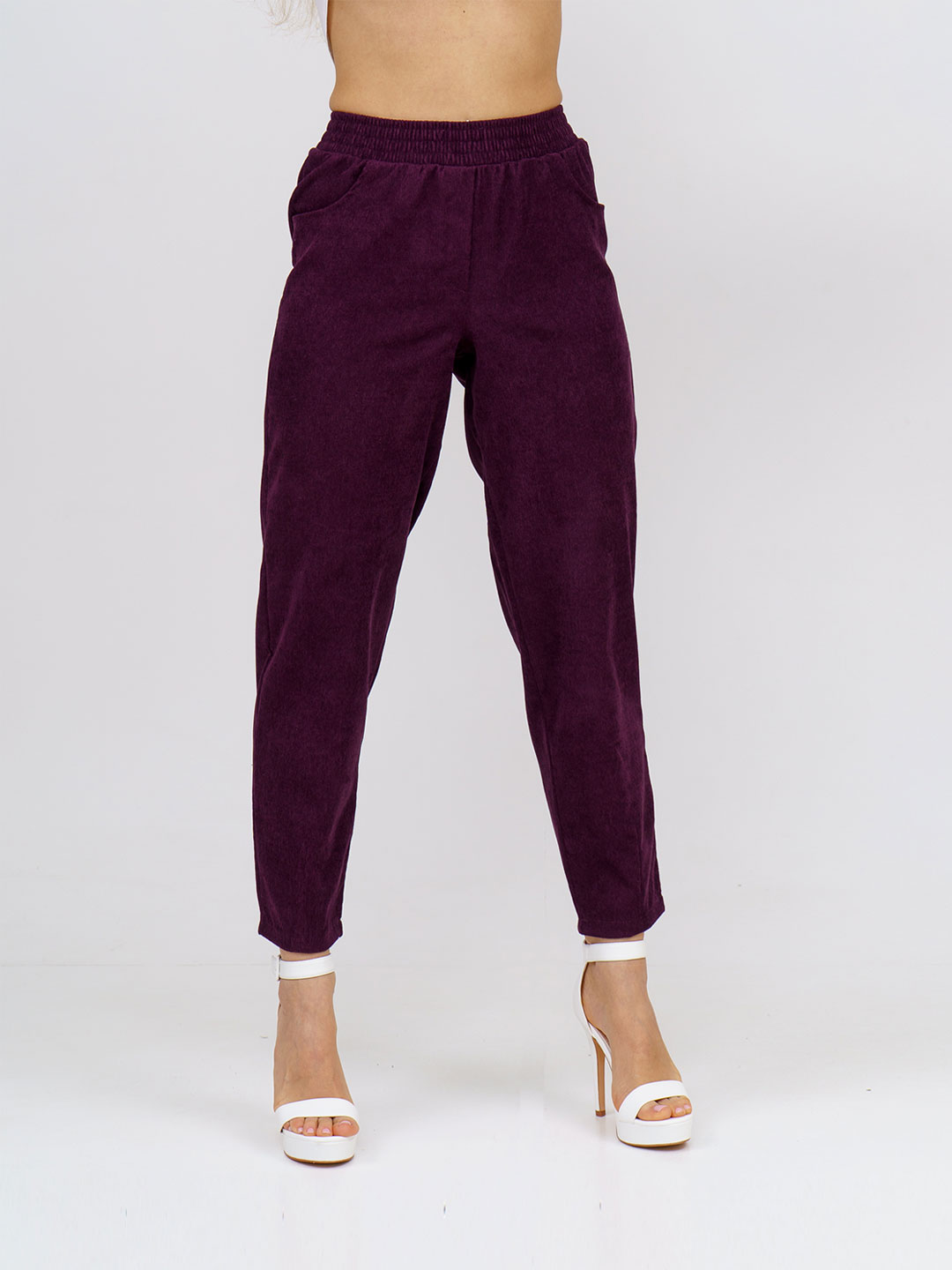 Брюки бананы вельветовые становятся актуальны с наступлением прохладной погоды. Это основа базового гардероба женщины и девушки. Брюки вельветовые со средней посадкой зауженные к низу заменят джоггеры, карго, клеш с разрезами , палаццо, широкие трубы и кожаные брюки. Идеально сочетаются с водолазками, а также блузками, худи, джемперами. Дополните их берцами и зимой вы не замерзнете. Деловые брючки с бархатной текстурой подарят уютное тепло и ощущение комфорта. Mодель подойдет любому типу фигуры и для любого возраста - для женщин, девушек, подростков.