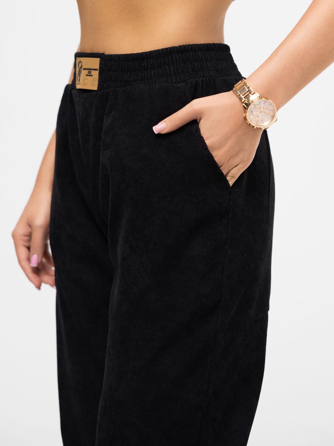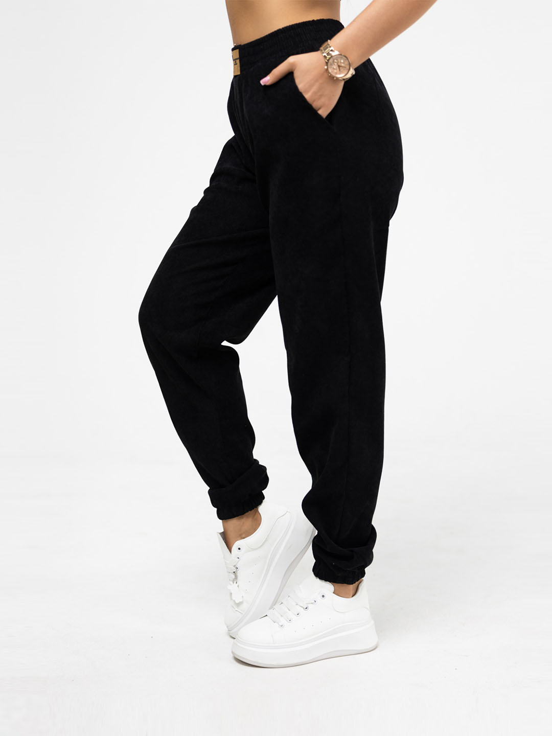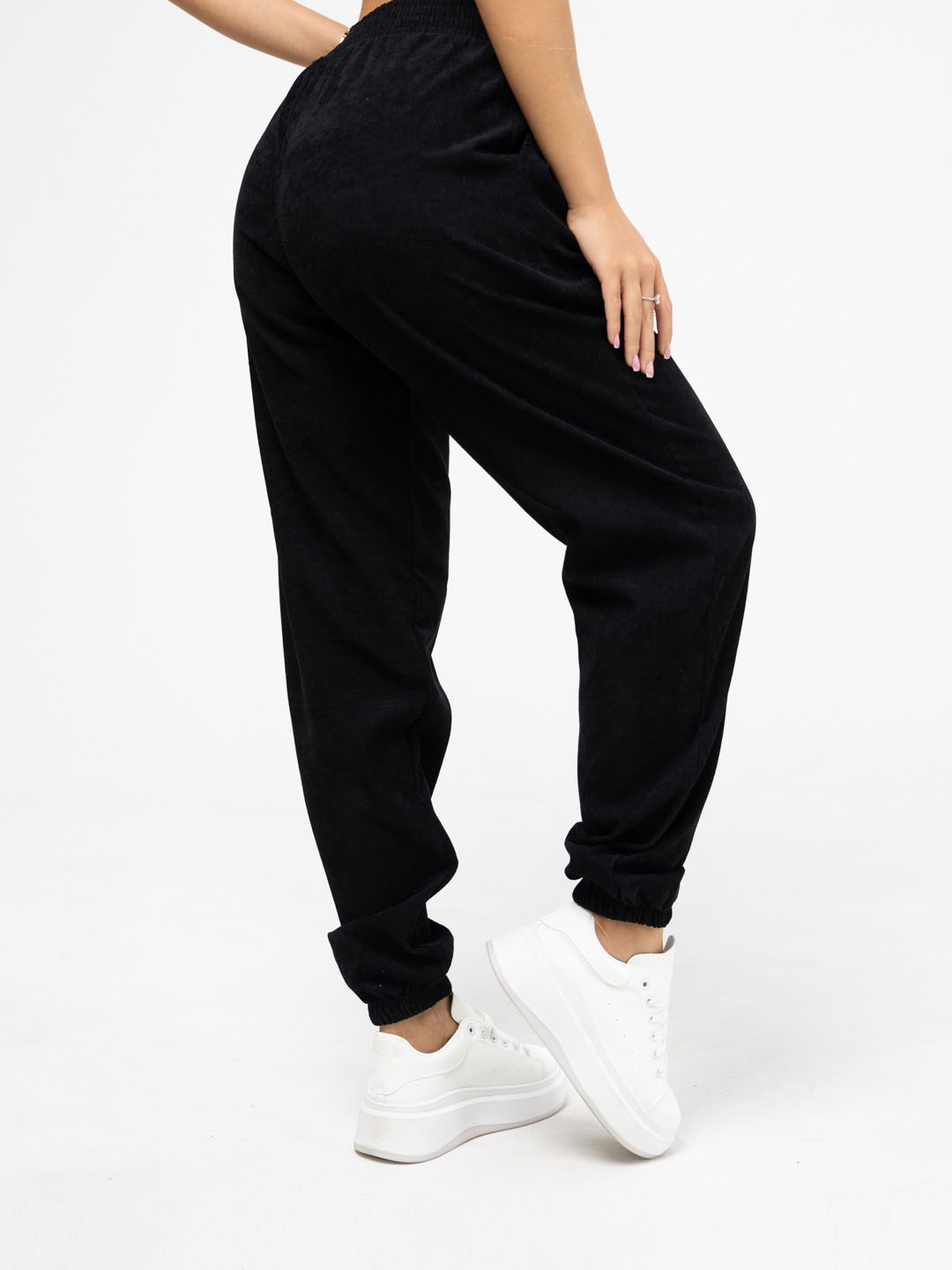 Женские трикотажные брюки черного цвета из мягкого и стильного вельвета - идеальный выбор для создания элегантного образа. Они отлично сидят по фигуре, обеспечивают комфорт и подчеркивают женскую красоту. Носите их как с повседневной блузой, так и с праздничным топом - эти брюки подойдут к любому наряду!
