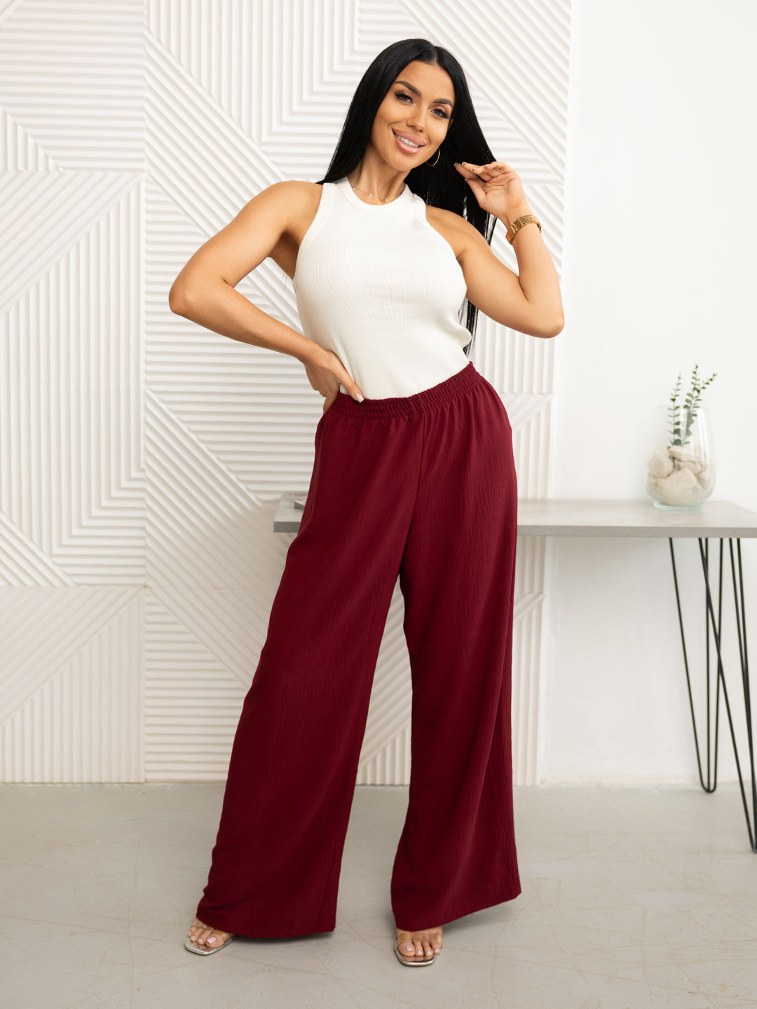 Брюки женские свободного силуэта, в стиле - шаровары, выполненные из мягкого, приятного к телу материала - жатка кантри. Уникальность материала заключается в интересном "мятом" эффекте, что придает брюкам неповторимый стиль и практичность. Пояс изделия на резинке, для надежной фиксации на талии и повышенного комфорта при носке.