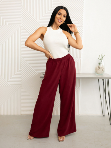 Брюки женские прямого силуэта с поясом на резинке и удобными карманами с отрезным бочком. Низ брючин с регулировкой по ширине.