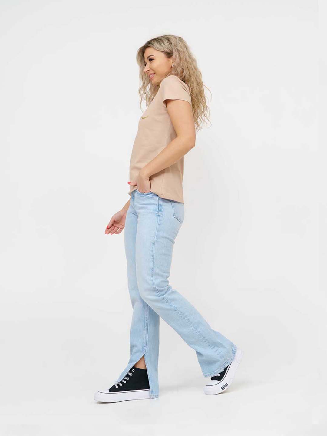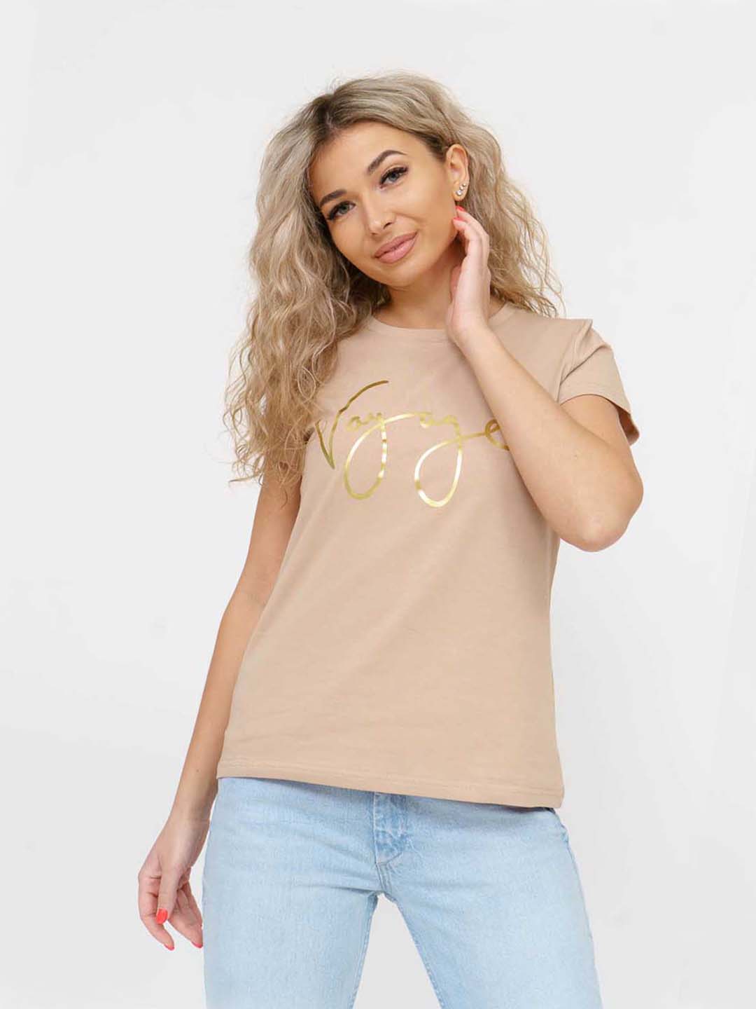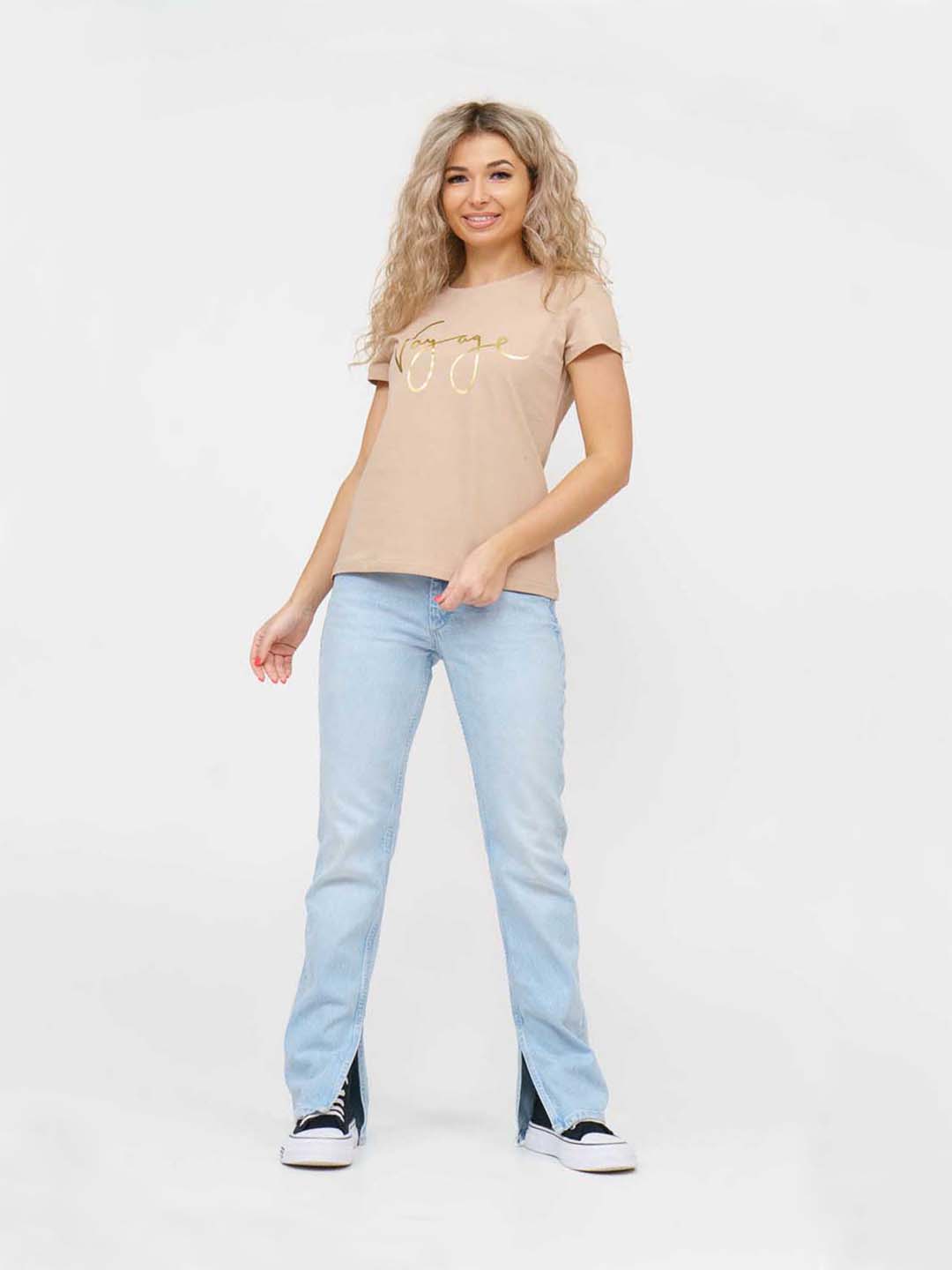 Базовая женская футболка, прямого силуэта, с О-образной горловиной и коротким рукавом. Представлена в 3 базовых цветах. Спереди печать на полочке.